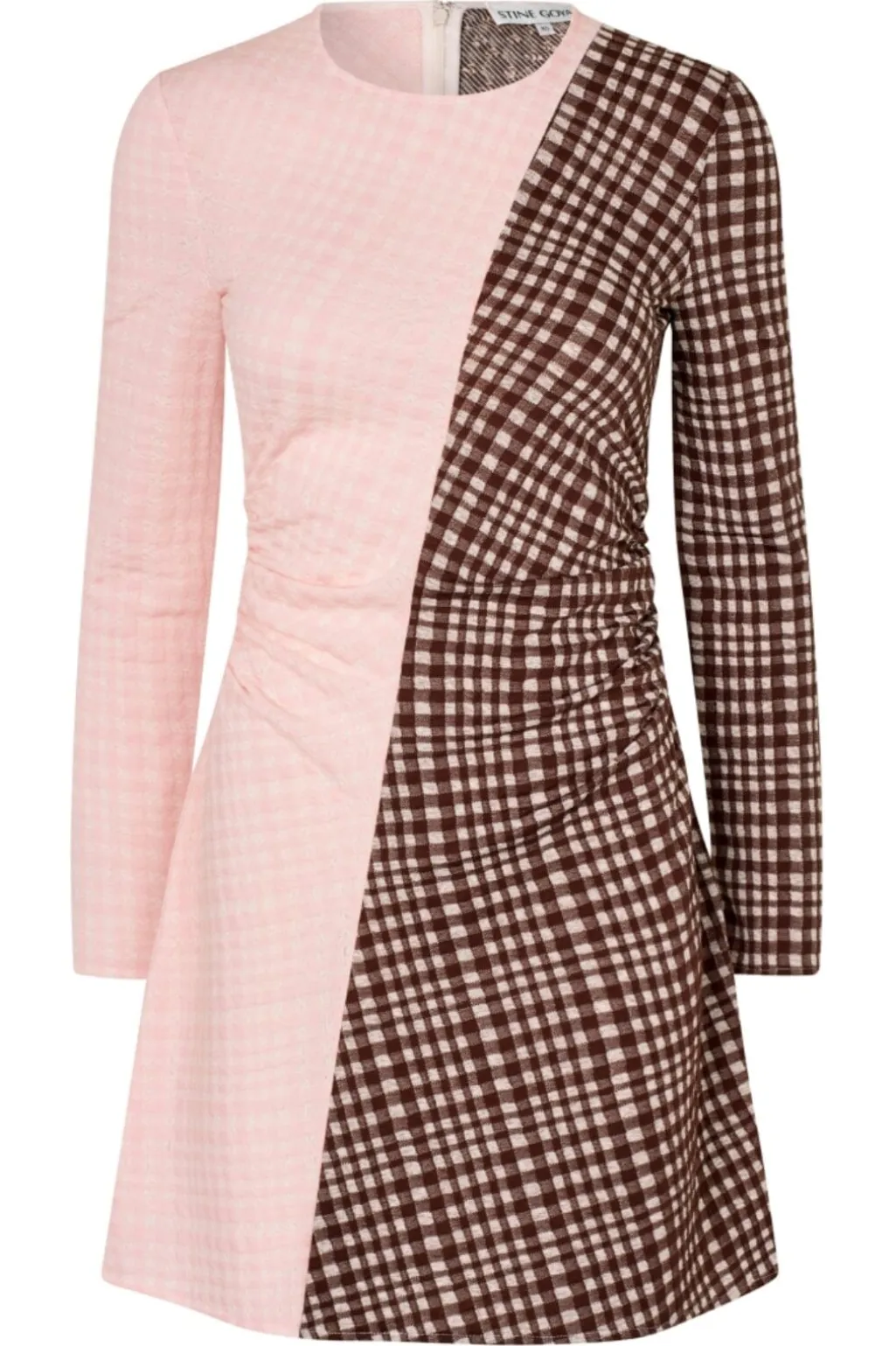Model: Sg-aw25-d157-2118 – 2118 Checkered Jersey, Ruched Waist Short Dress