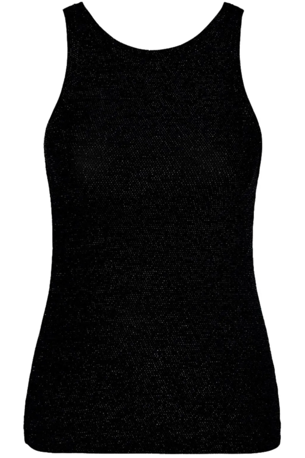 Sort top fra Gossia med metallisk glans. Toppen har en rund halsudskæring og et ærmeløst design. Den kan styles med både jeans og nederdele.