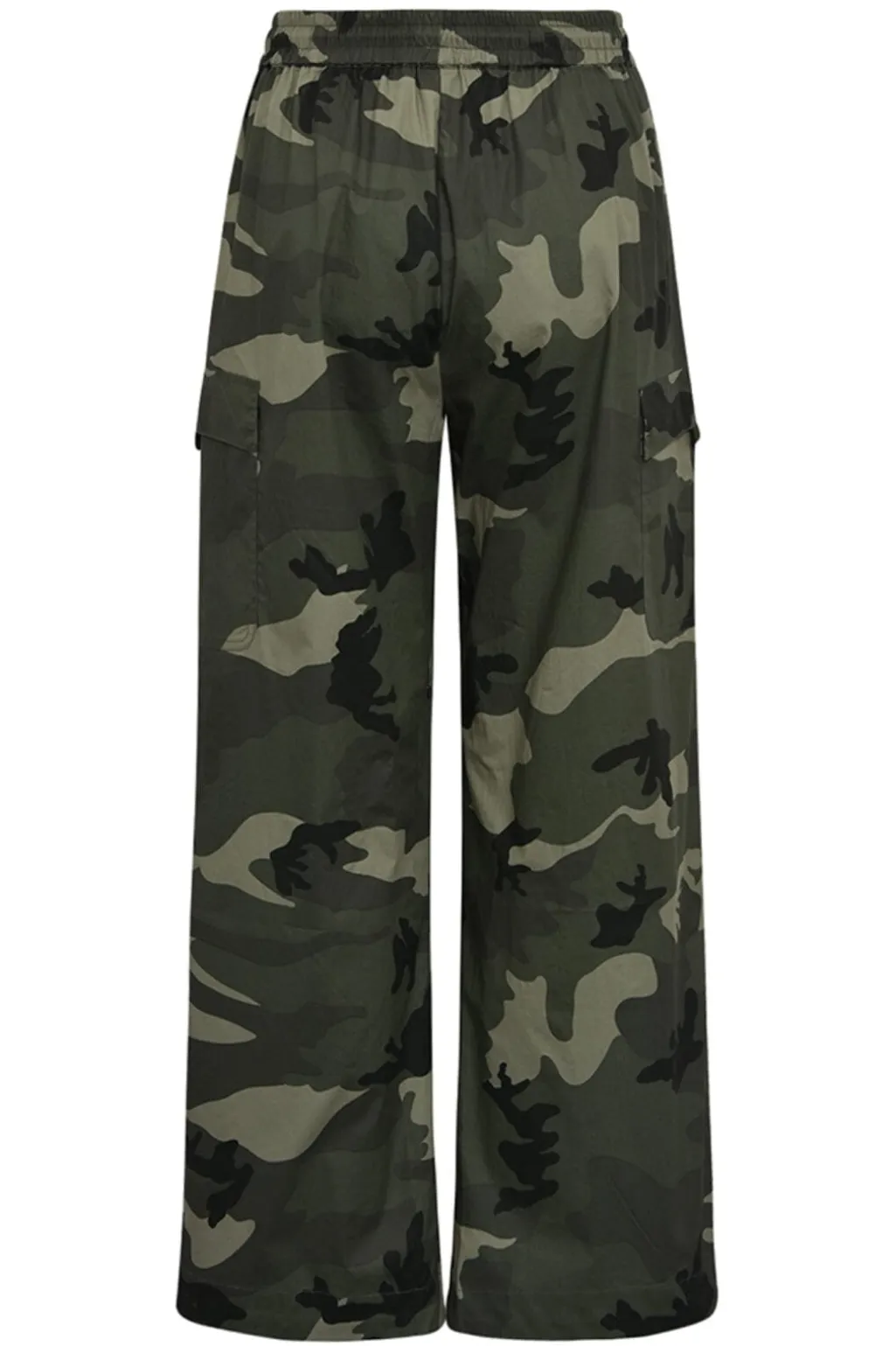 Bukser fra Gossia i army camouflage-mønster. De ankellange bukser har en regular fit med snøredetaljer og dekorative syninger.