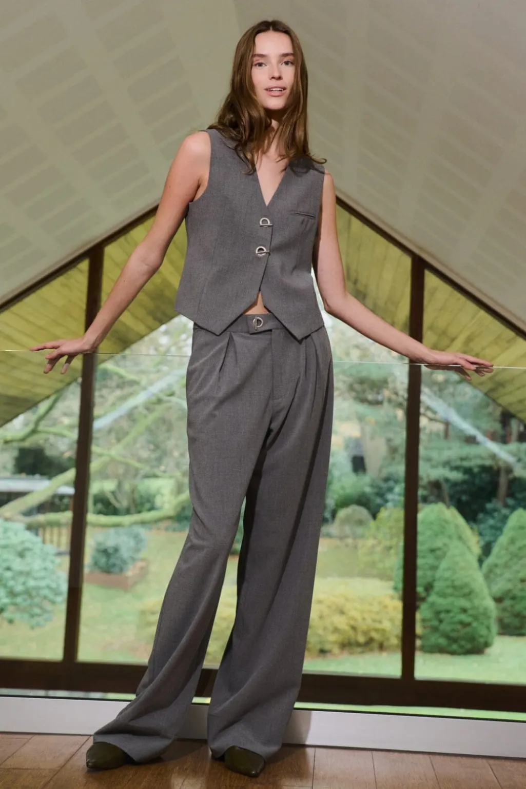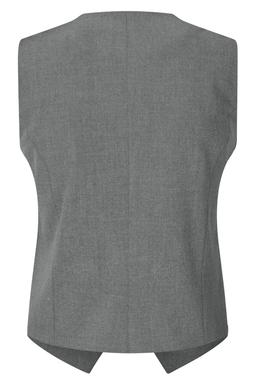 Vest fra MbyM i grå farve med meleret mønster. Vesten kan bæres til både formelle anledninger, hverdagsbrug og festlige lejligheder.