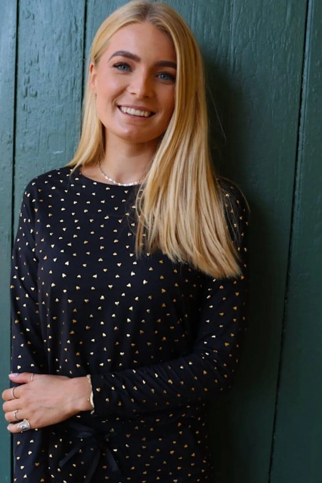 Sort top fra Liberté med små gyldne hjerter som print. Toppen har lange ærmer og en løs pasform.