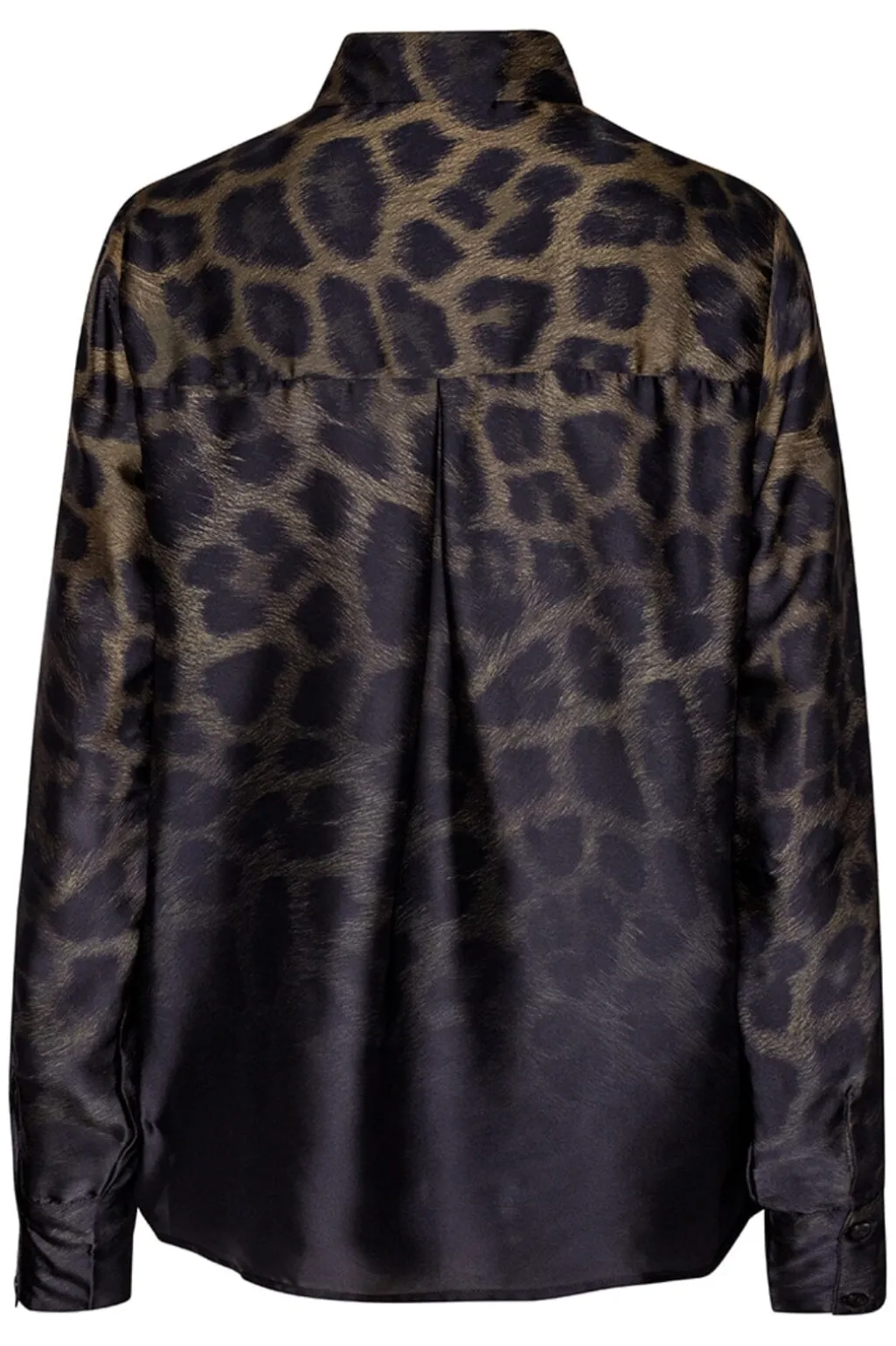 Skjorte fra Karmamia med gradient leopardmønster i brune og sorte nuancer. Skjorten har en klassisk skjortekrave og lange ærmer med knaplukning hele vejen ned.