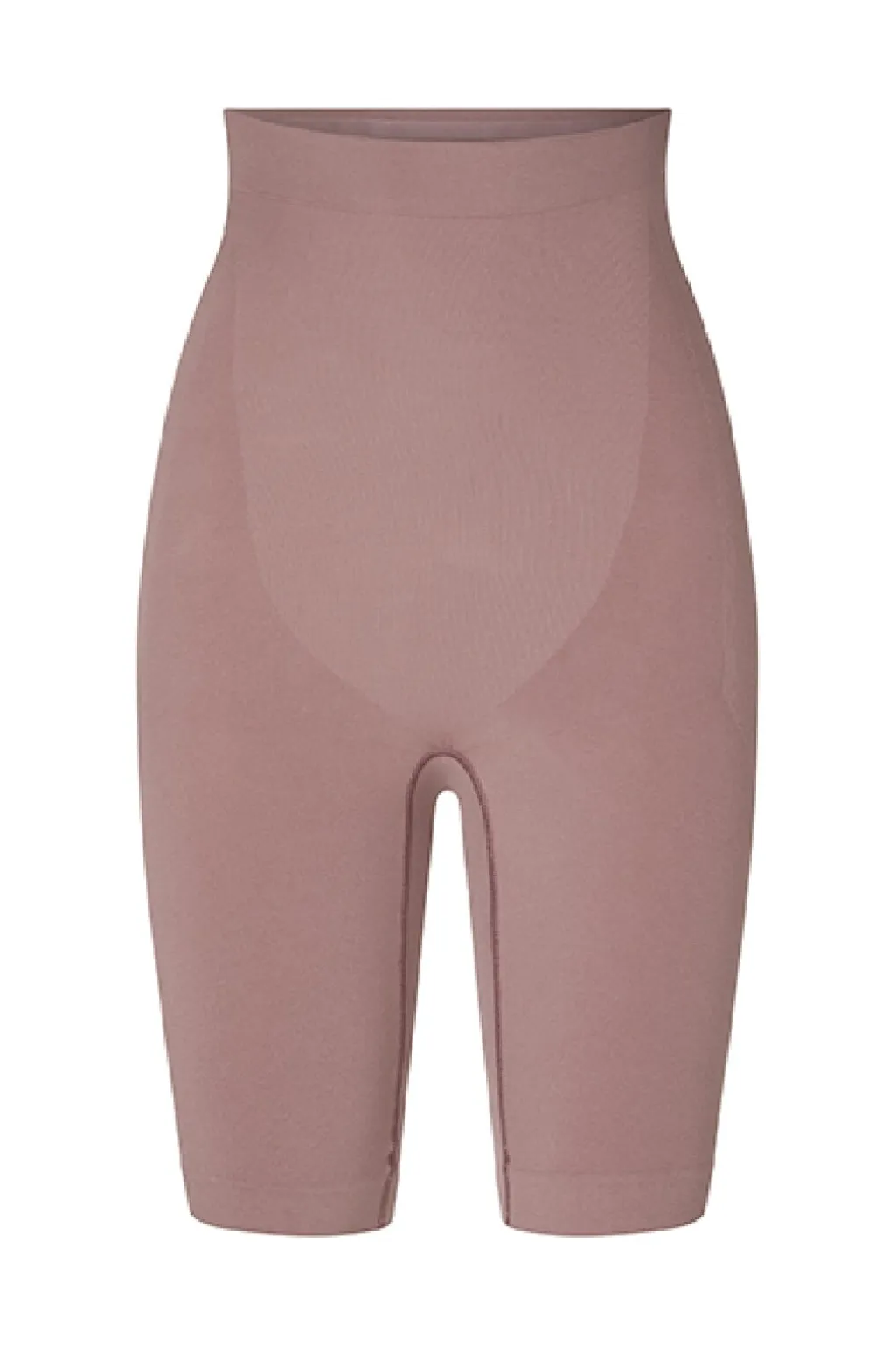 Højtaljede shaping shorts fra Lykkeland Ateliér i taupe. Shortsene har en tætsiddende pasform og en sømløs konstruktion med kompressionszoner.