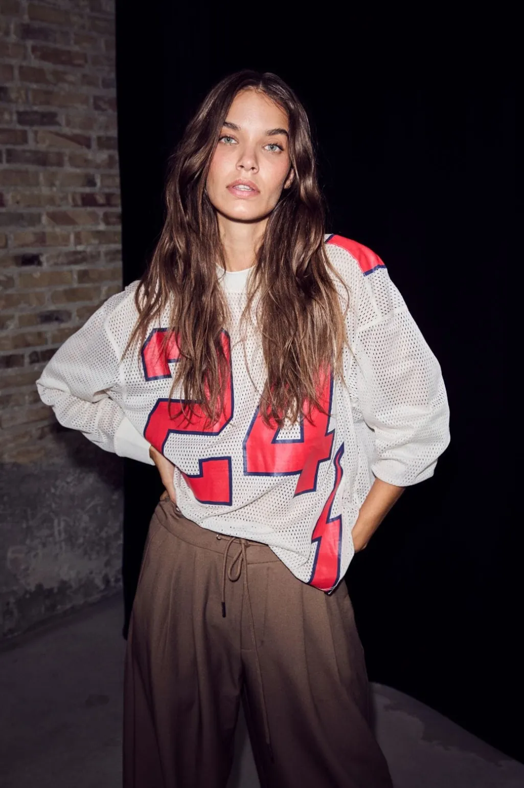 Langærmet t-shirt fra Haute L’Amitié i en perlefarvet base med røde detaljer. Det store røde tal 24 og lynsymbolet giver trøjen et sporty udtryk.
