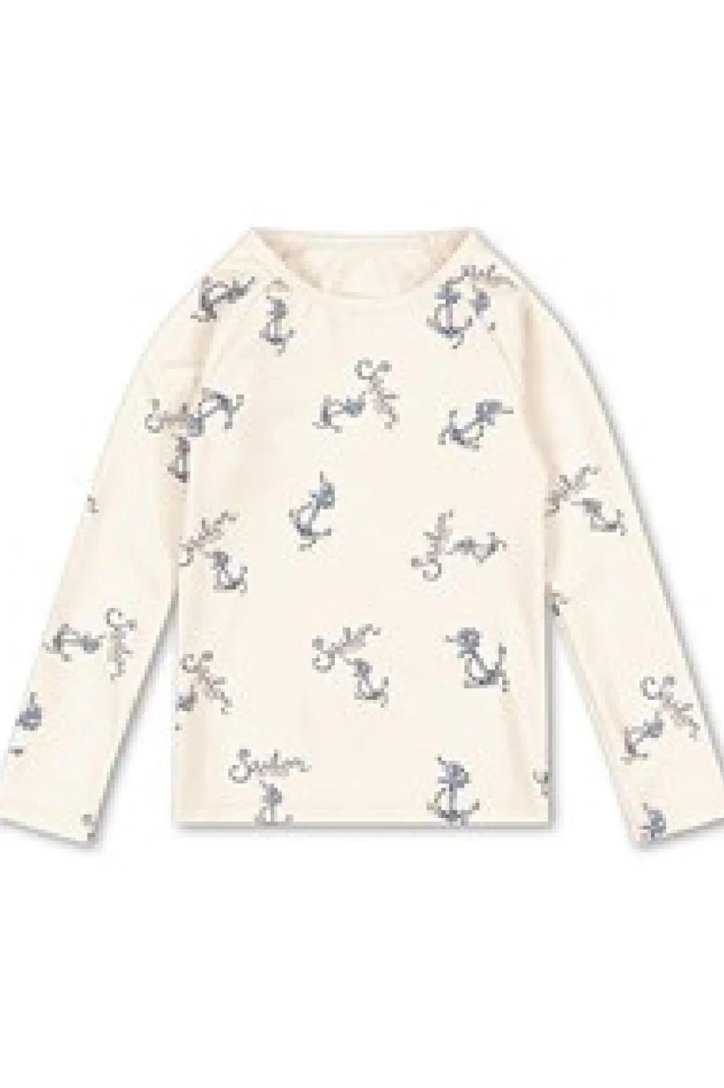 Cremefarvet badebluse fra Konges Sløjd med et maritimt ankermønster. Den lange model har rund halsudskæring og er designet til beskyttelse under vandaktiviteter.
