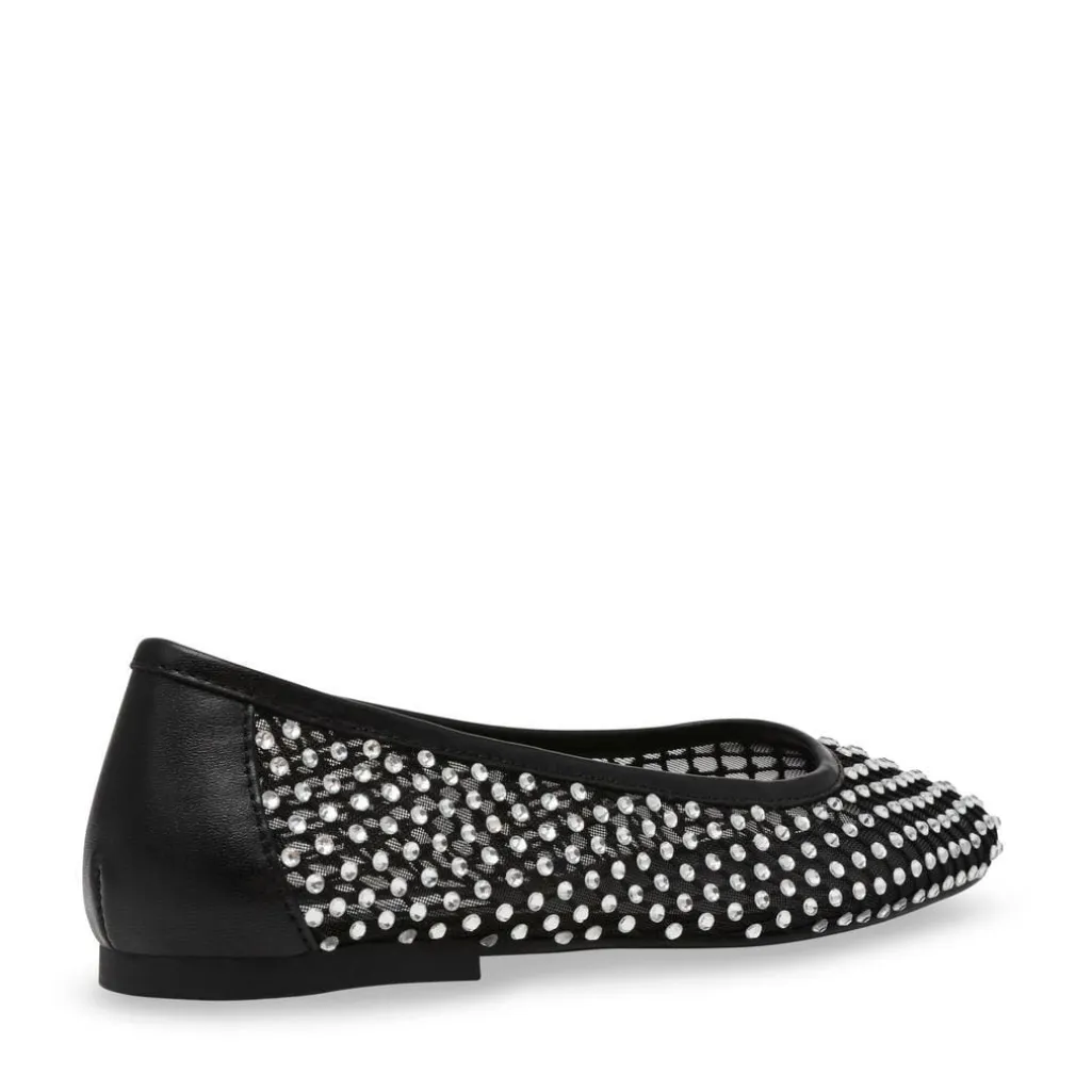 Sorte ballerinaer fra Steve Madden i stof-polyuretan mesh med sølvfarvede perledetaljer. Den flade hæl og runde tå giver skoen et klassisk udtryk.