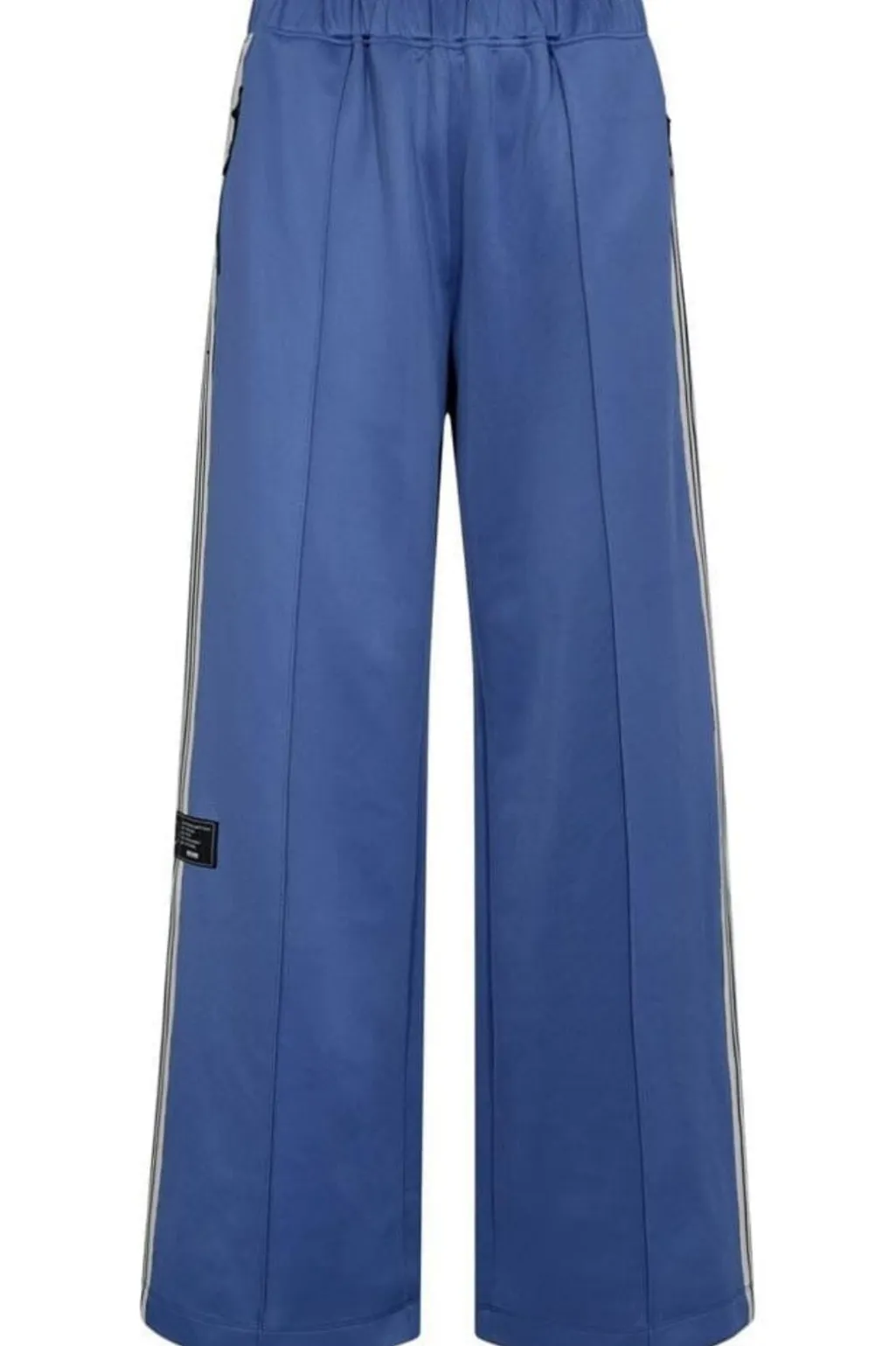 Baggybukser fra Haute L’Amitié i blå med hvide striber langs siden. Bukserne har en løs pasform og en elastisk talje.