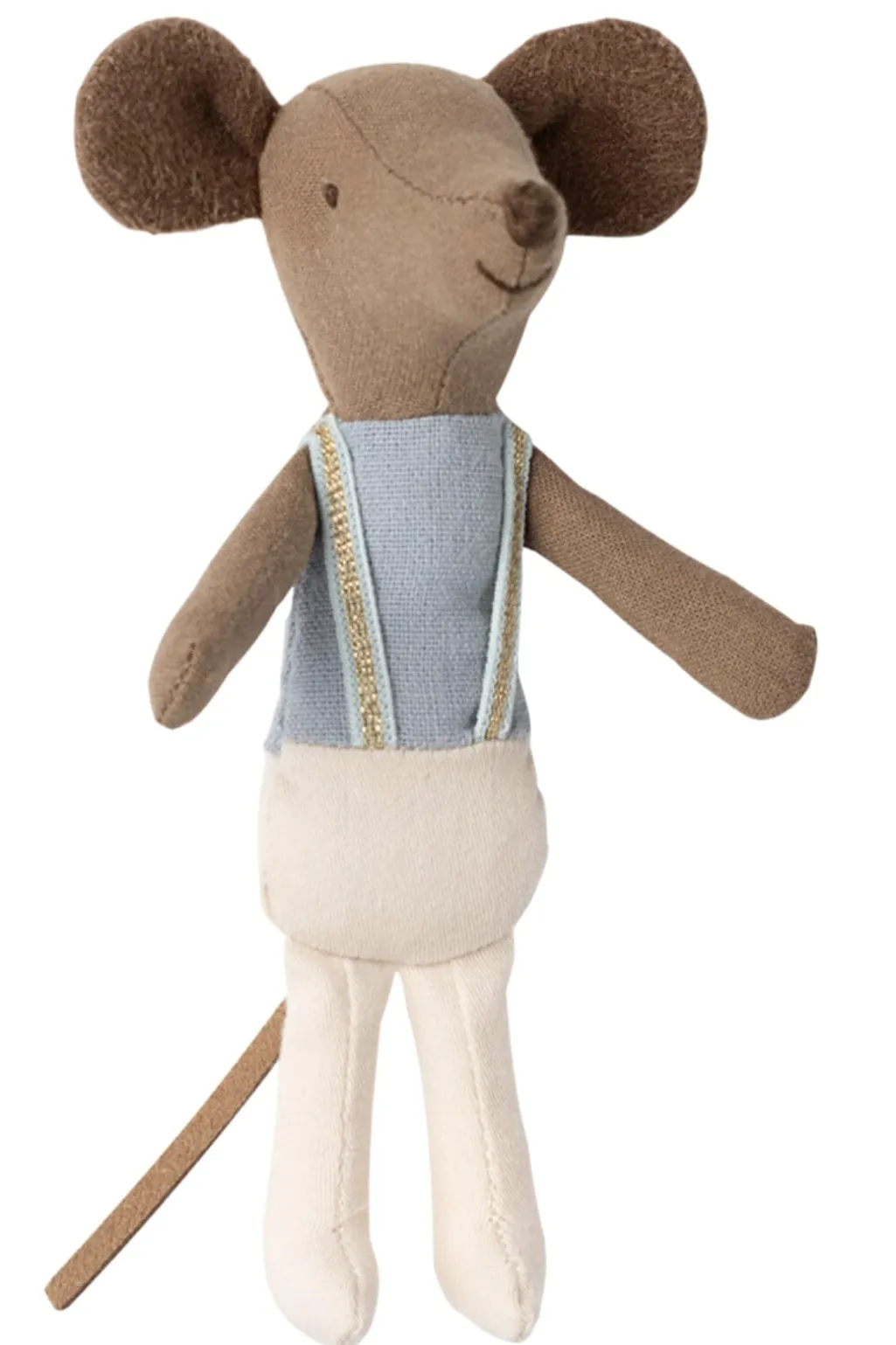 En balletdanser-mus fra Maileg med brune ører og hale, iført en lyseblå top og hvide bukser.