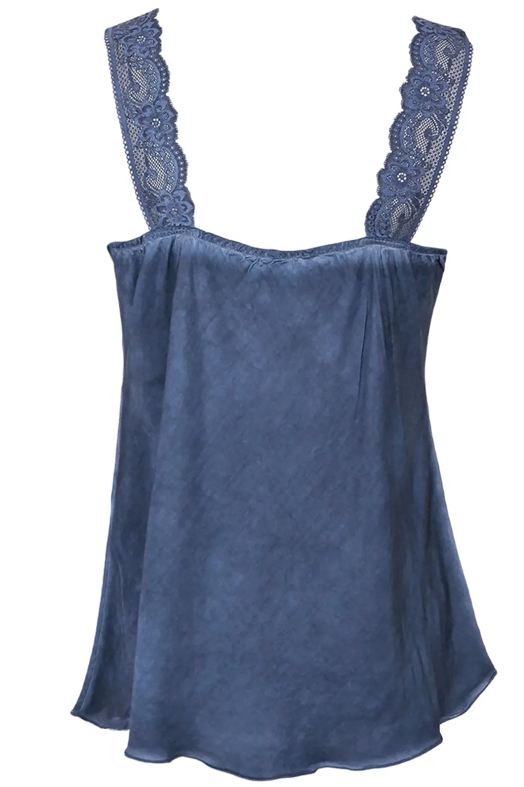 Sød top i blå, fra Black Colour med blond detaljer ved stroppe, samt øverst fortil.
