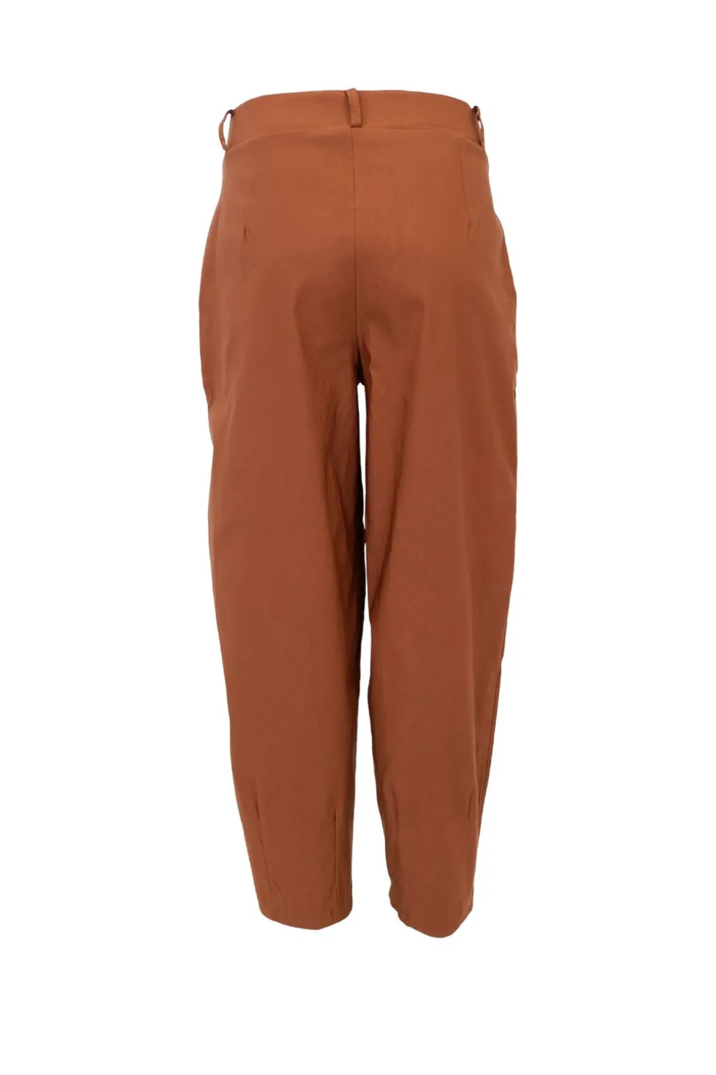 Kamelfarvede bukser fra Black Colour med høj talje og løs pasform. Bukserne har en ankellængde og er lavet i en blød materialekombination med bæltestropper samt knap- og lynlåslukning.