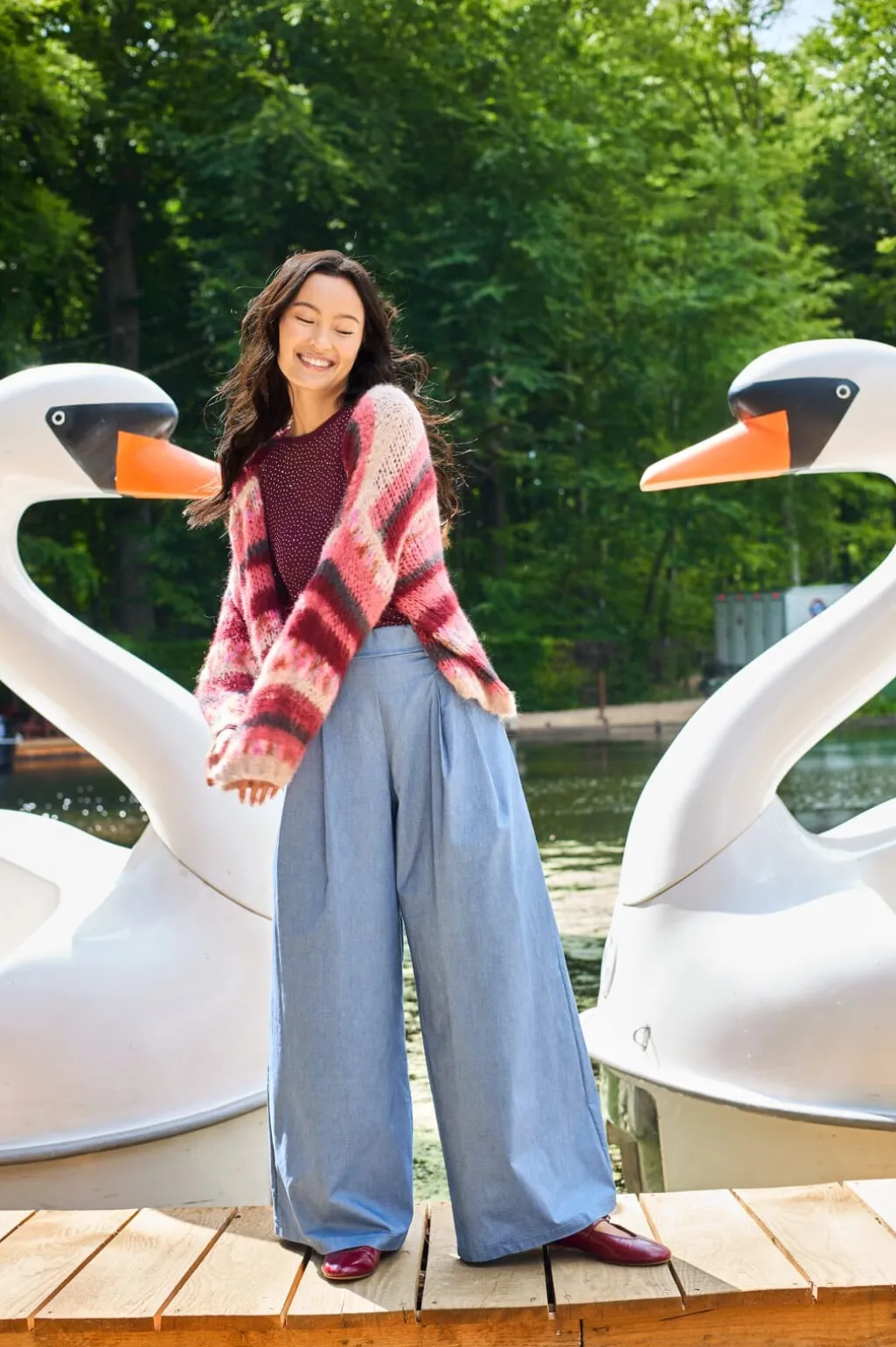 Wideleg-bukser fra Black Colour i lys denim melange. Bukserne har en løs pasform med brede ben og høj talje, der giver en afslappet silhuet.