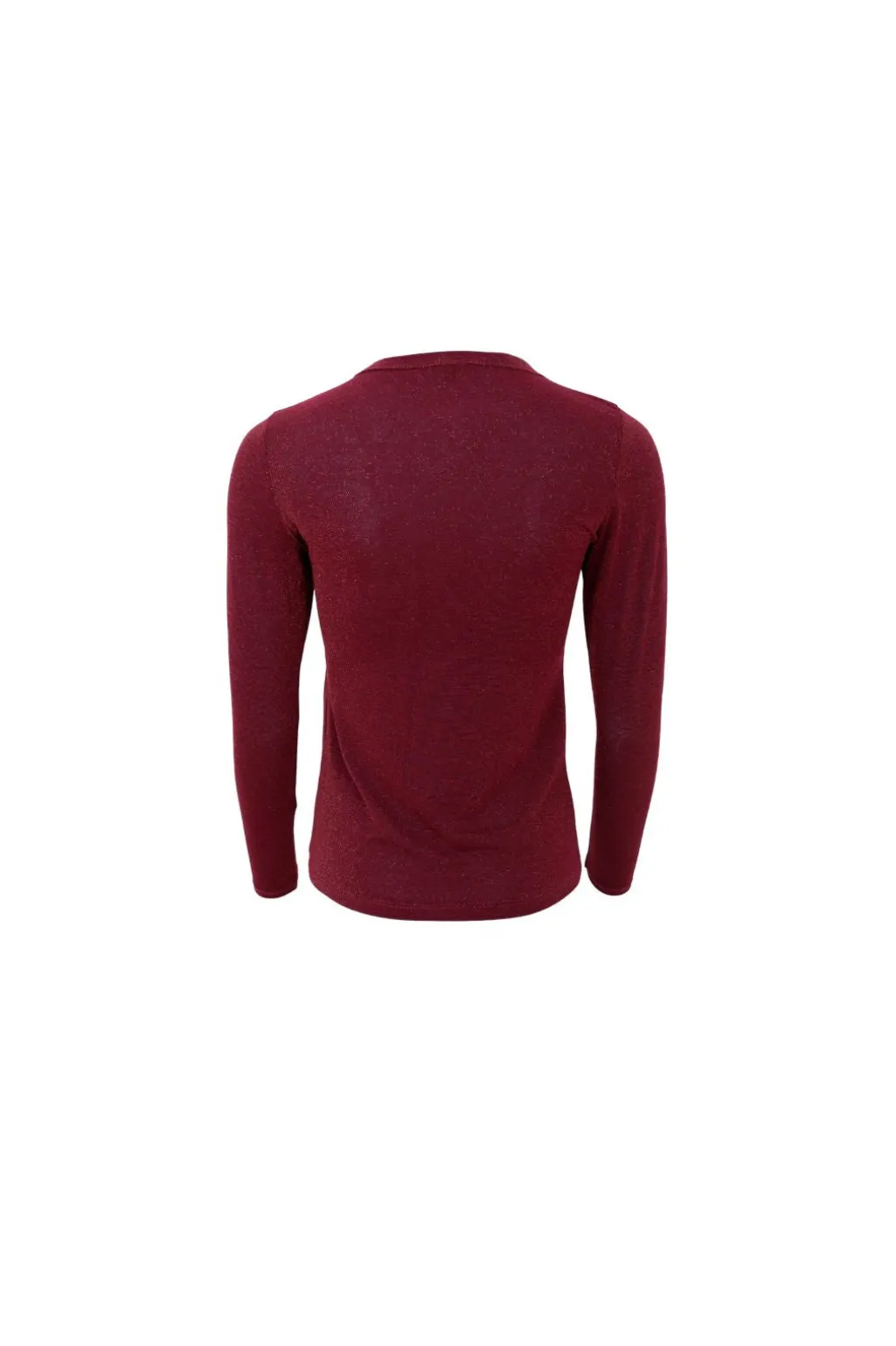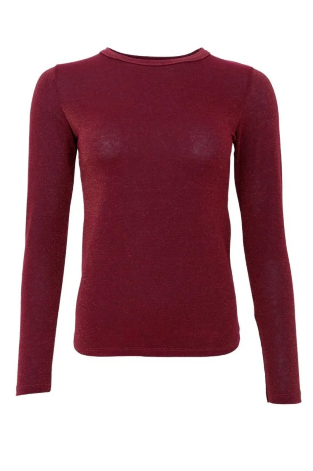 Bluse fra Black Colour i blommefarvet stof med en diskret glimmereffekt. Den har en rund halsudskæring og lange ærmer med en tætsiddende pasform.