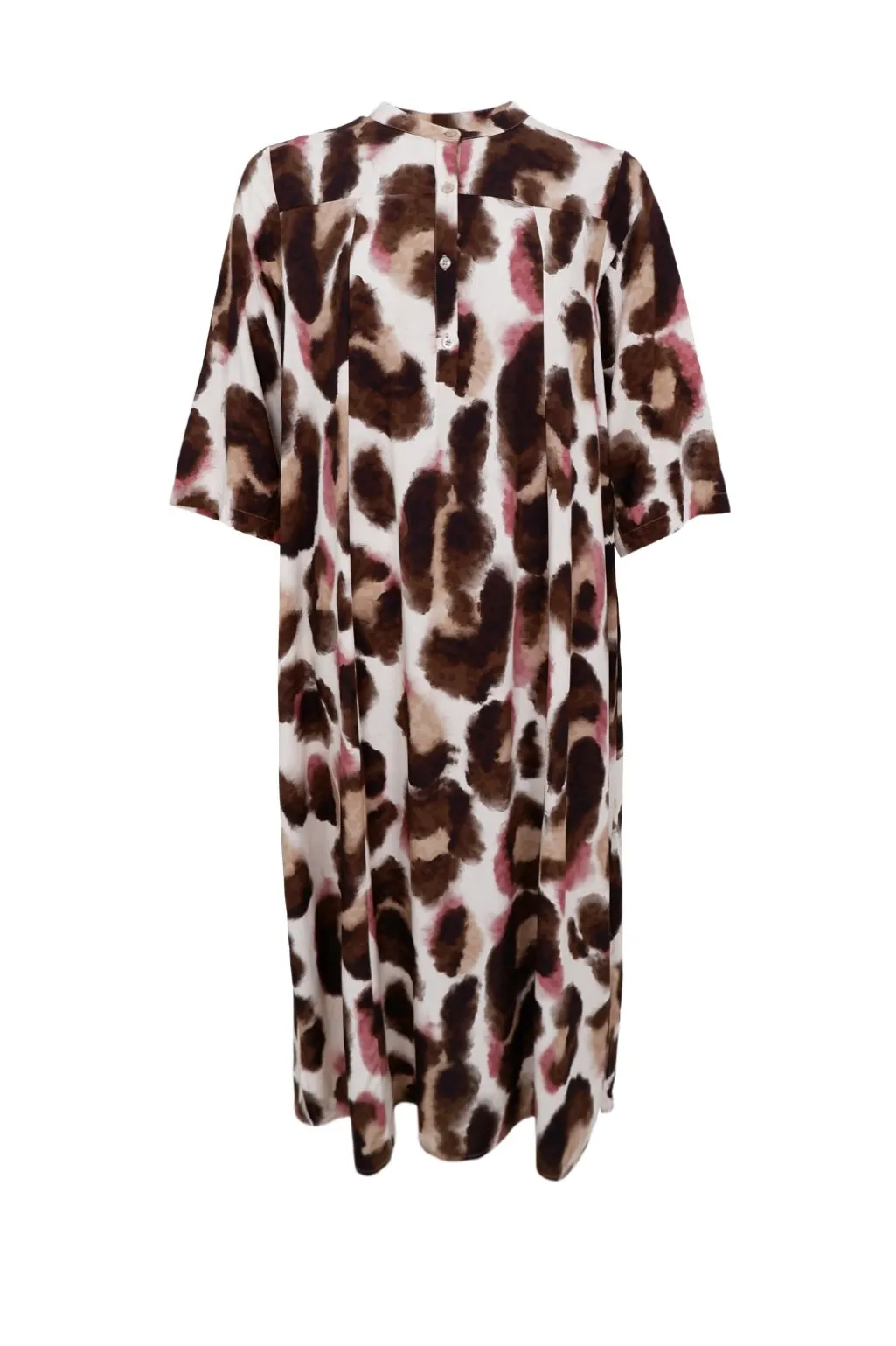 Skjortekjole fra Black Colour i 100% viskose. Kjolen har et abstrakt dyreprint i brune og rosa toner med en løs pasform og korte ærmer.