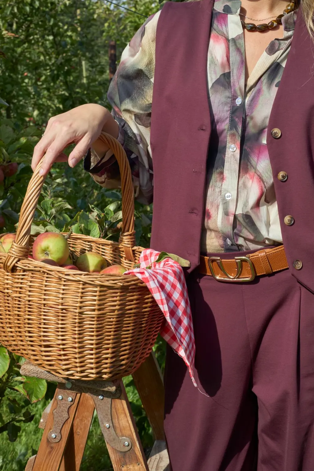 Bælte fra Black Colour, lavet af læder i en varm brun cognac-nuance. Bæltet har en dekorativ spænde med en særlig form.