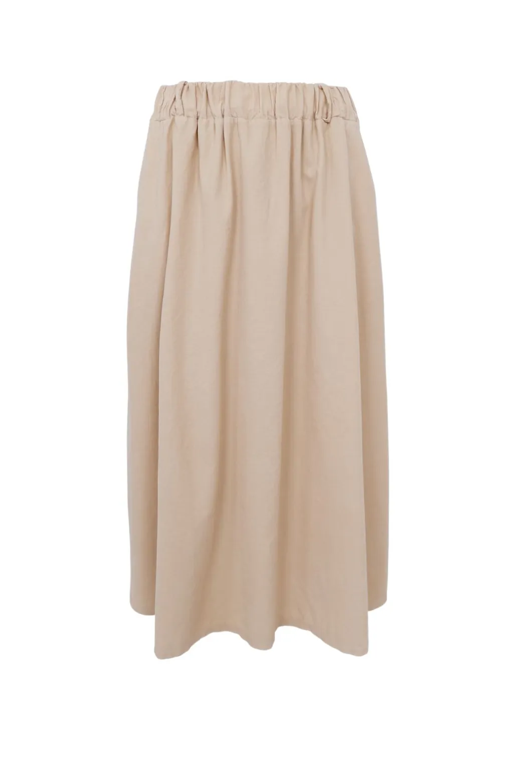 Fløjlsnederdel fra Black Colour i en lys beige farve. Nederdelen er lavet af 100 % bomuld og har en elastisk talje med flæsedetaljer.