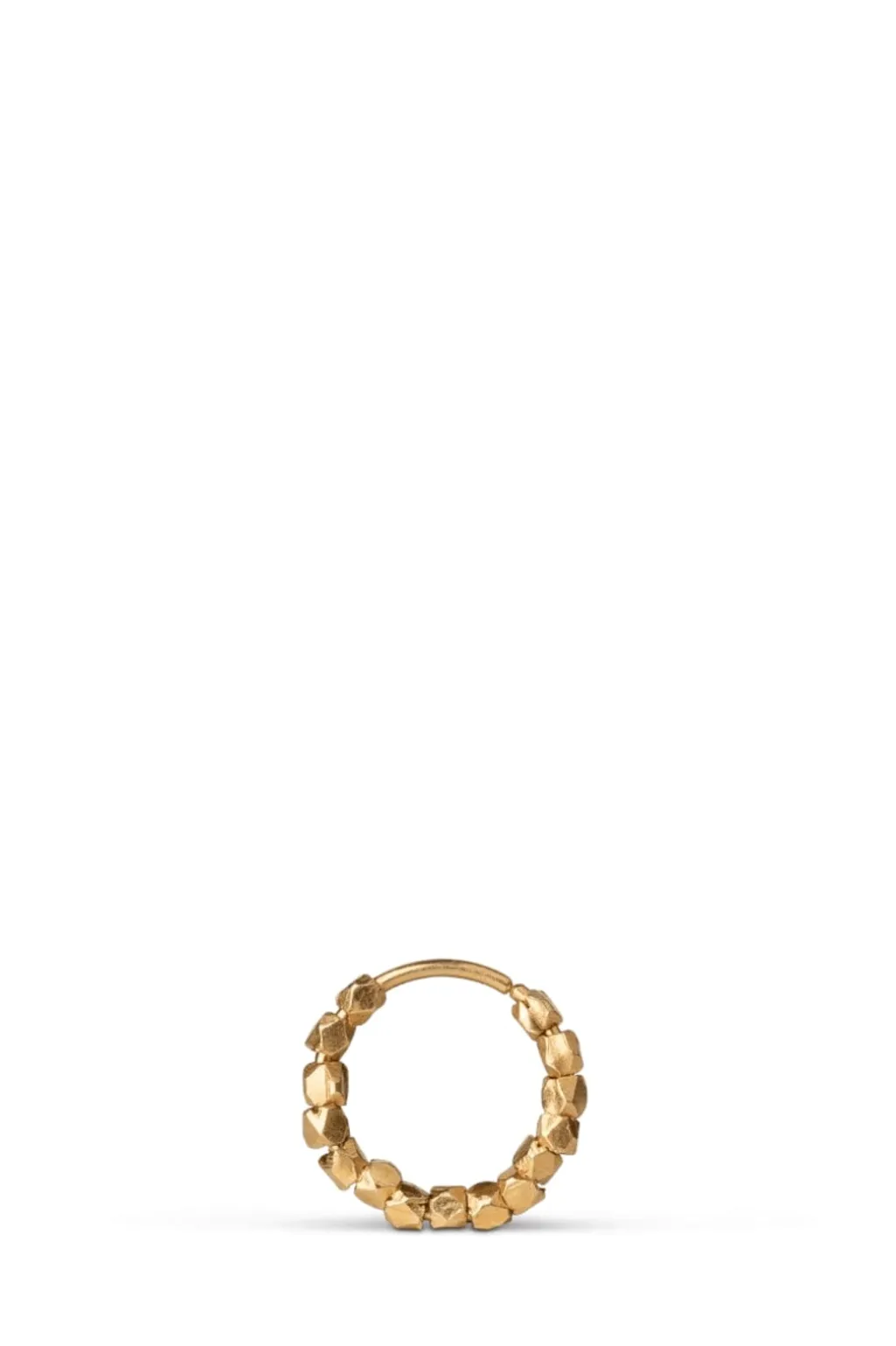 Forgyldt ørering fra Jane Kønig med et twist-design og matte perler. Øreringen er lavet i sterling sølv med en gylden finish og har en hoop-form med dekorative elementer.