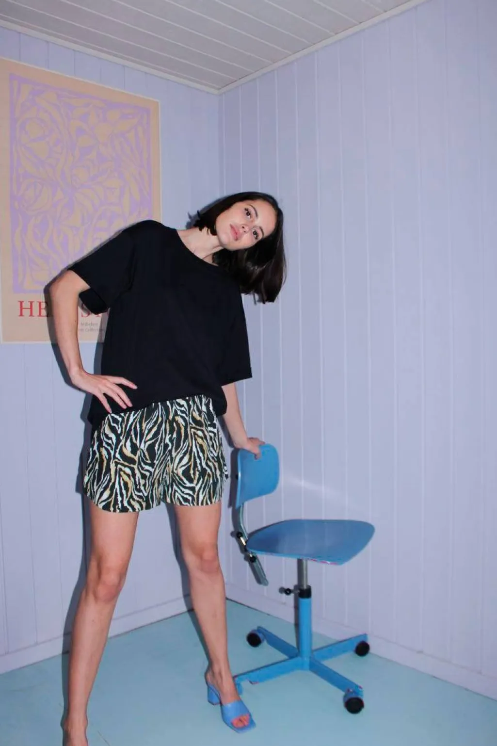 Sort t-shirt fra MbyM med løs pasform og rund halsudskæring. T-shirten har korte ærmer og er fremstillet i økologisk bomuld med en blød overflade.