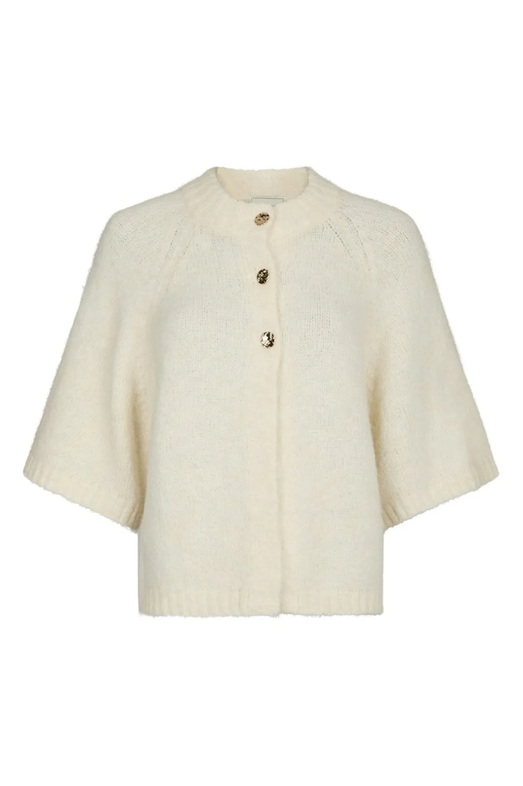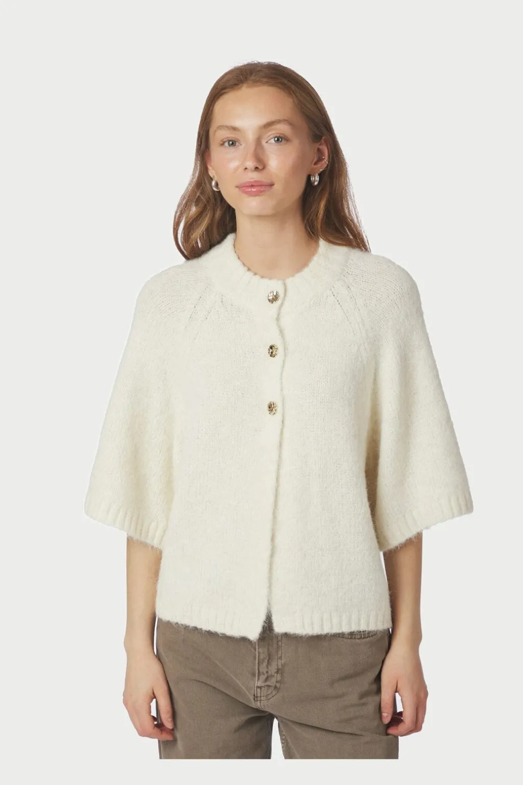 Strikket cardigan fra Neo Noir i off-white. Den har en fluffy tekstur og en løs pasform med vidde i ærmerne.