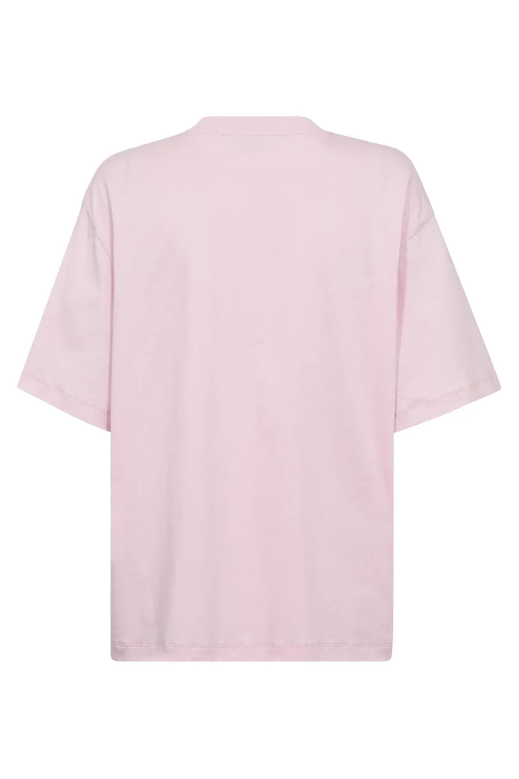 T-shirt fra A-View i pink og rød. Lavet af 100% økologisk bomuld. Forsiden har blomsterprint og broderet tekst med Fleur Libre.