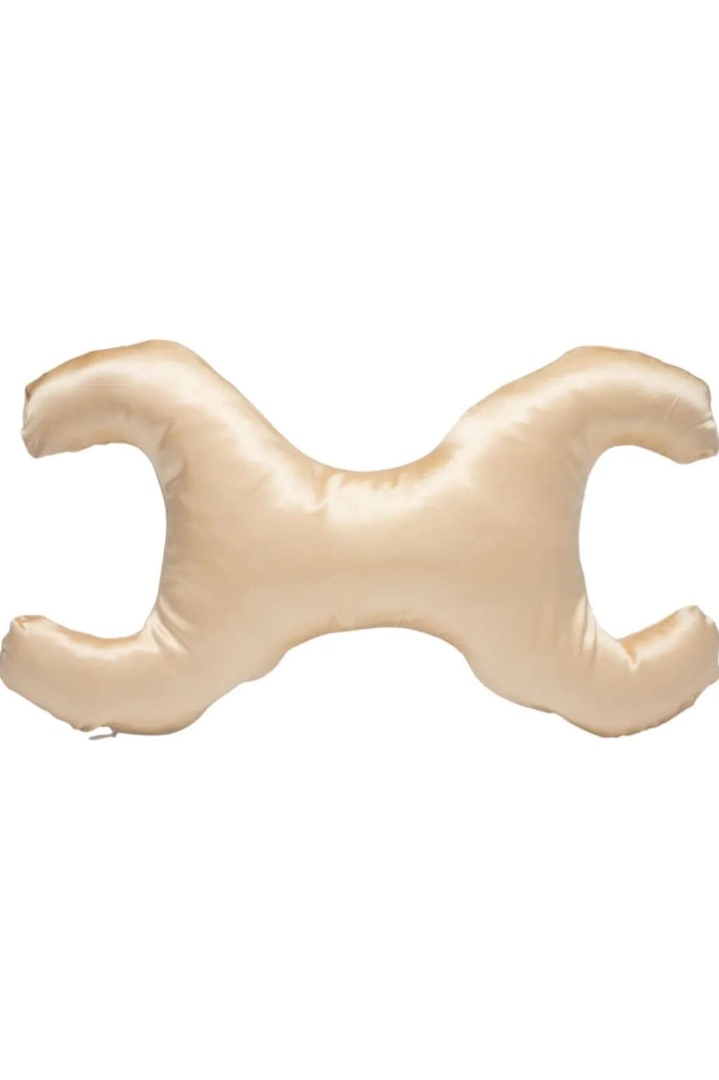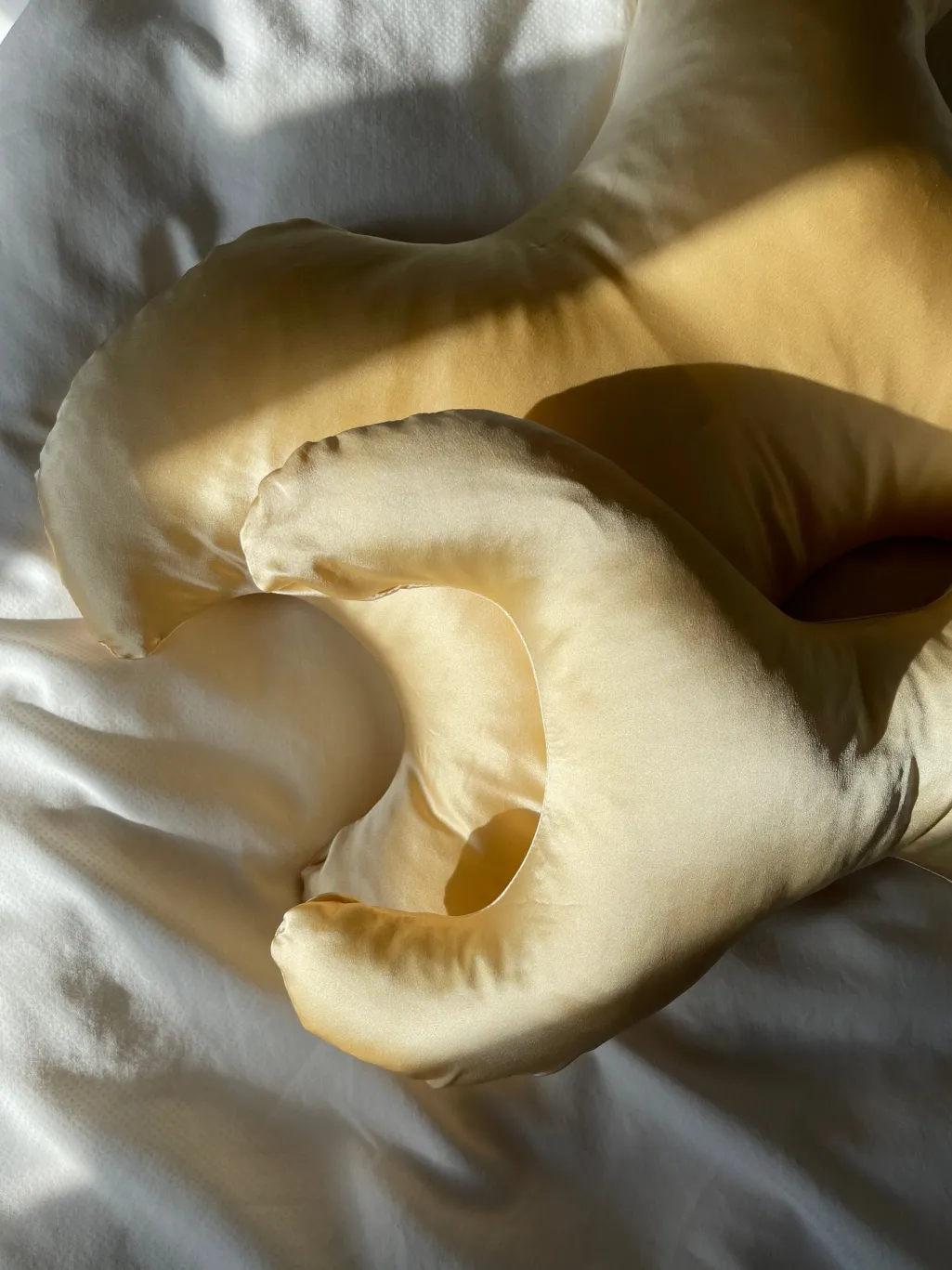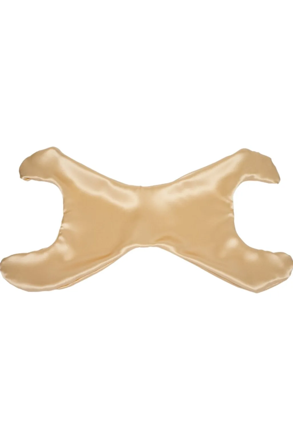 Guldfarvet pudebetræk fra Save My Face med en specialdesignet form. Betrækket er fremstillet i blød charmeuse-silke med temperaturregulerende og antibakterielle egenskaber.