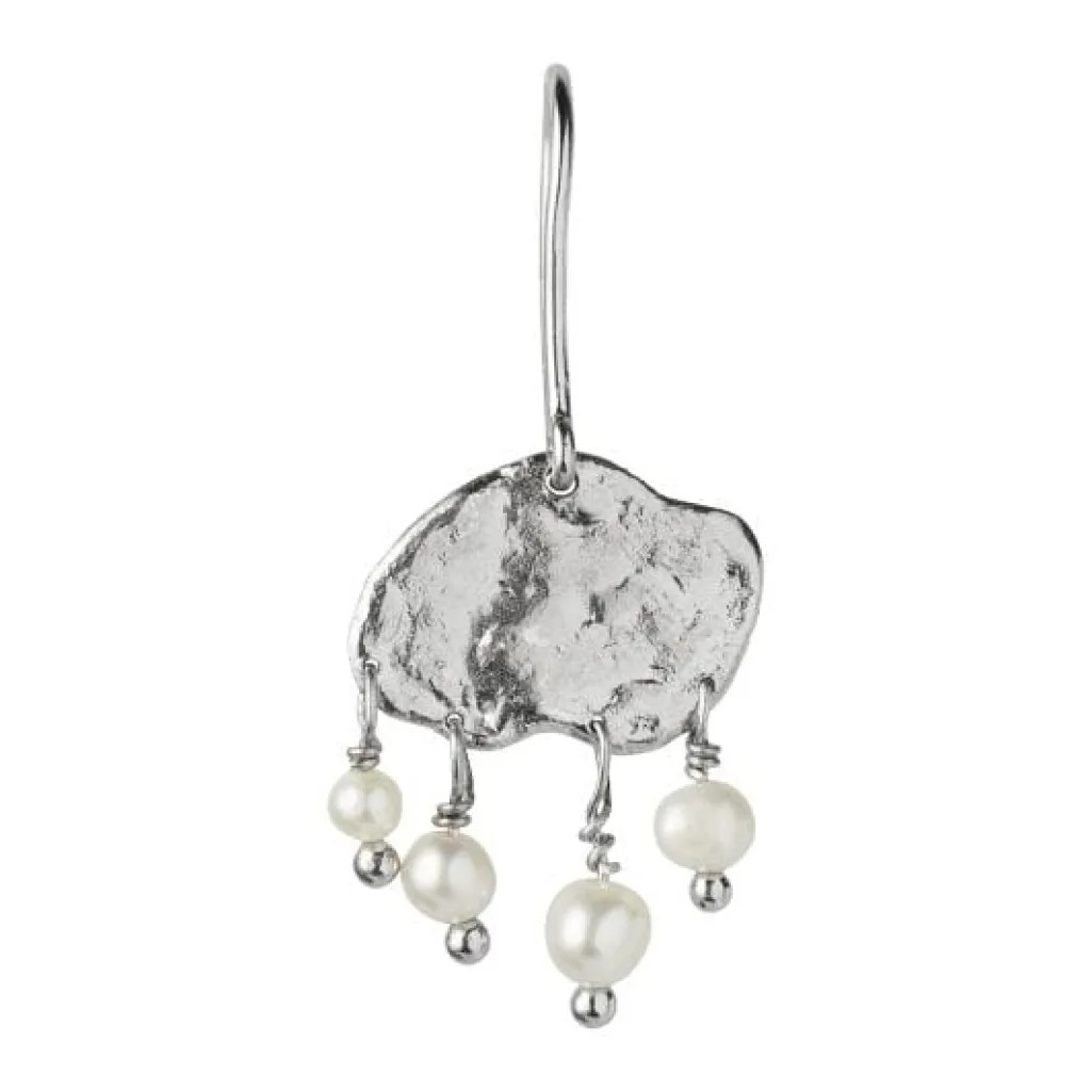Beskrivelse: Skøn ørering formet som en lille sky med banket overflade og dansende perler