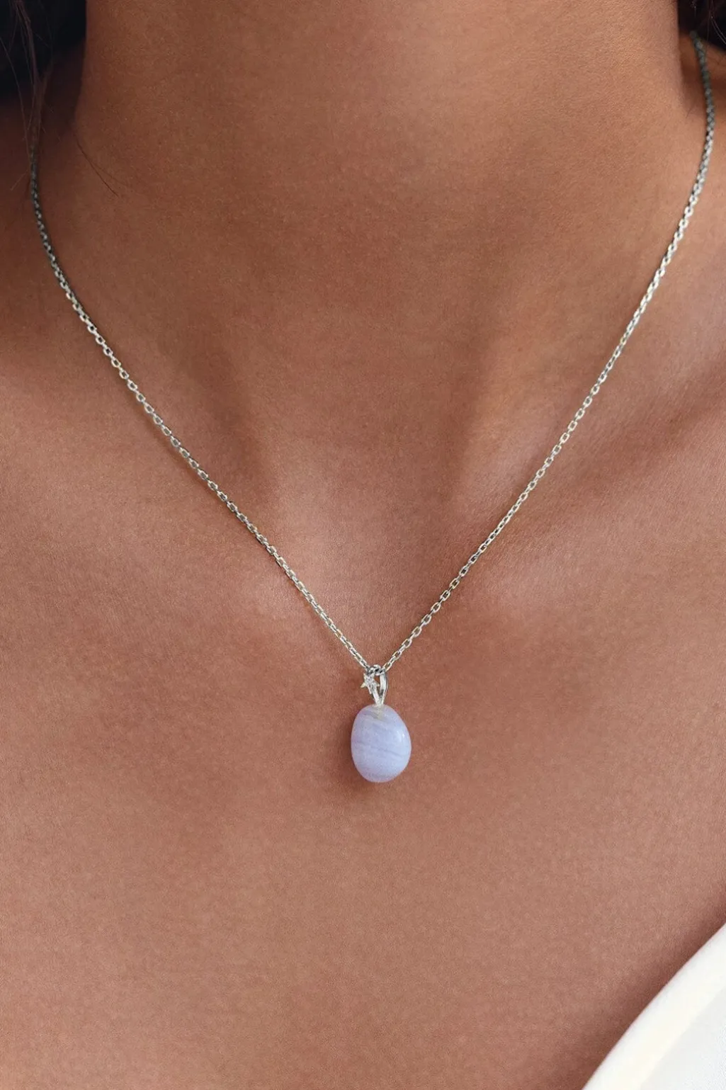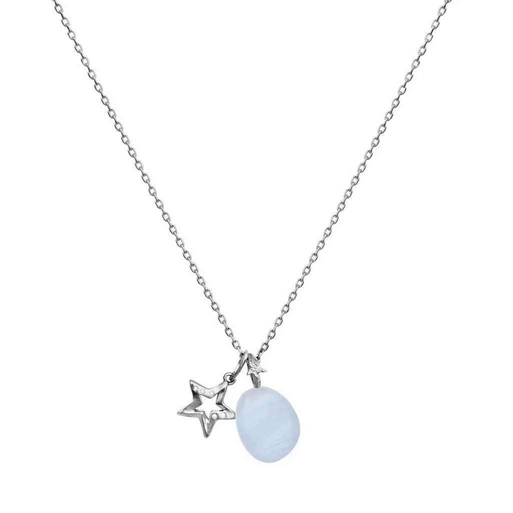 Vedhæng fra Maanesten med en lys blå sten og en stjerneformet detalje i sølv. Vedhænget er lavet af genanvendt sterlingsølv 925.