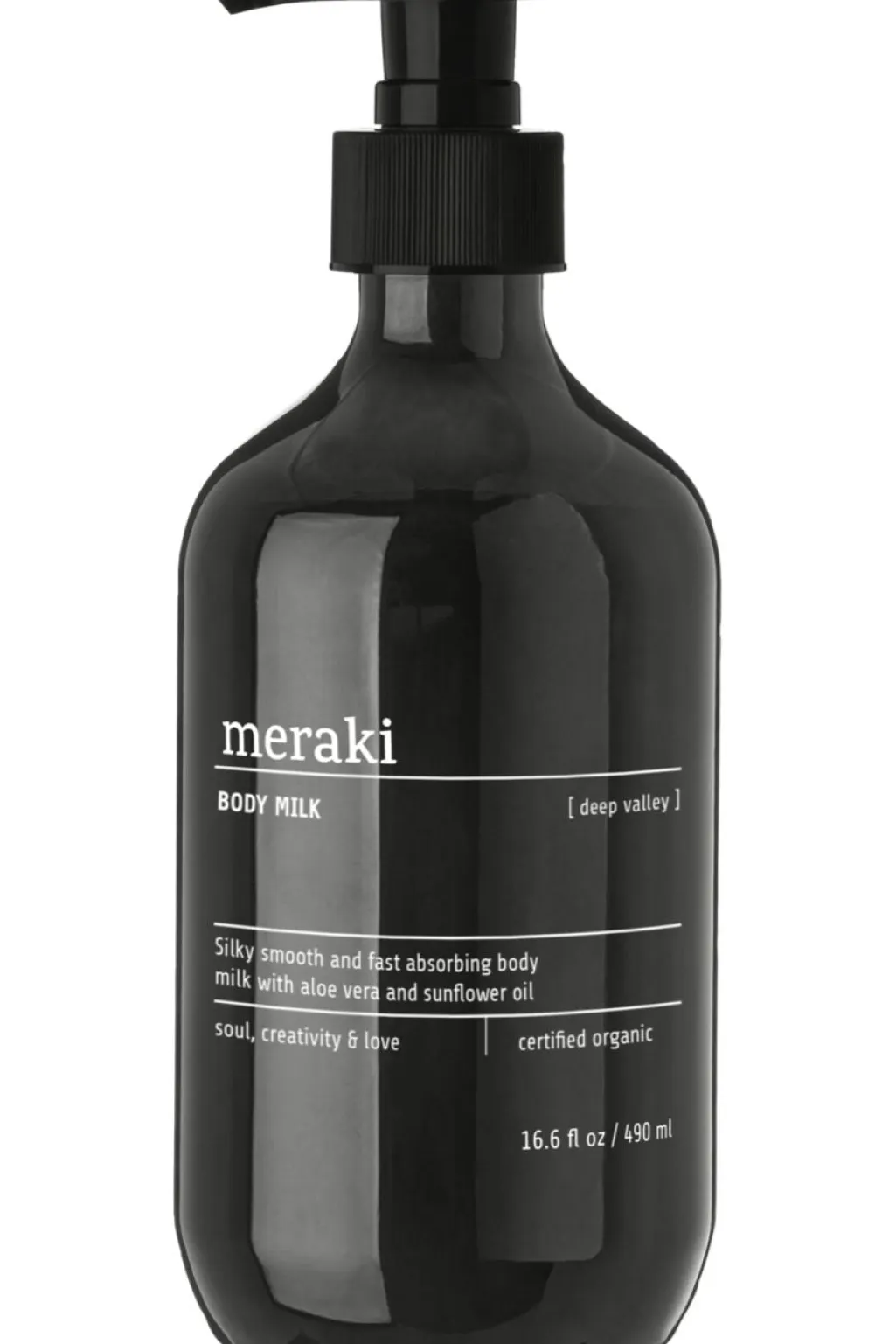 Bodymilk fra Meraki med 490 ml. COSMOS-certificeret og indeholder aloe vera og solsikkeolie. Hurtigabsorberende med silkeblød konsistens og citrusnoter af bergamot, appelsin, ylang-ylang, eukalyptus og mynte.