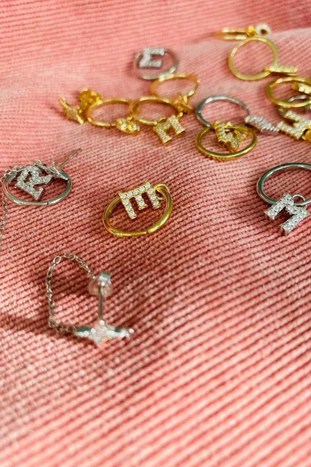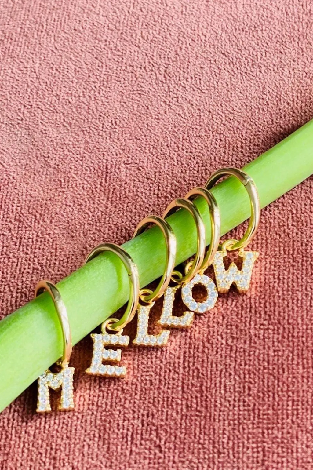 Forgyldt bogstavkreol fra Mellow Moon med et personligt design. Kreolen har et enkelt bogstav i glitrende finish, der gør den til et personligt smykke.