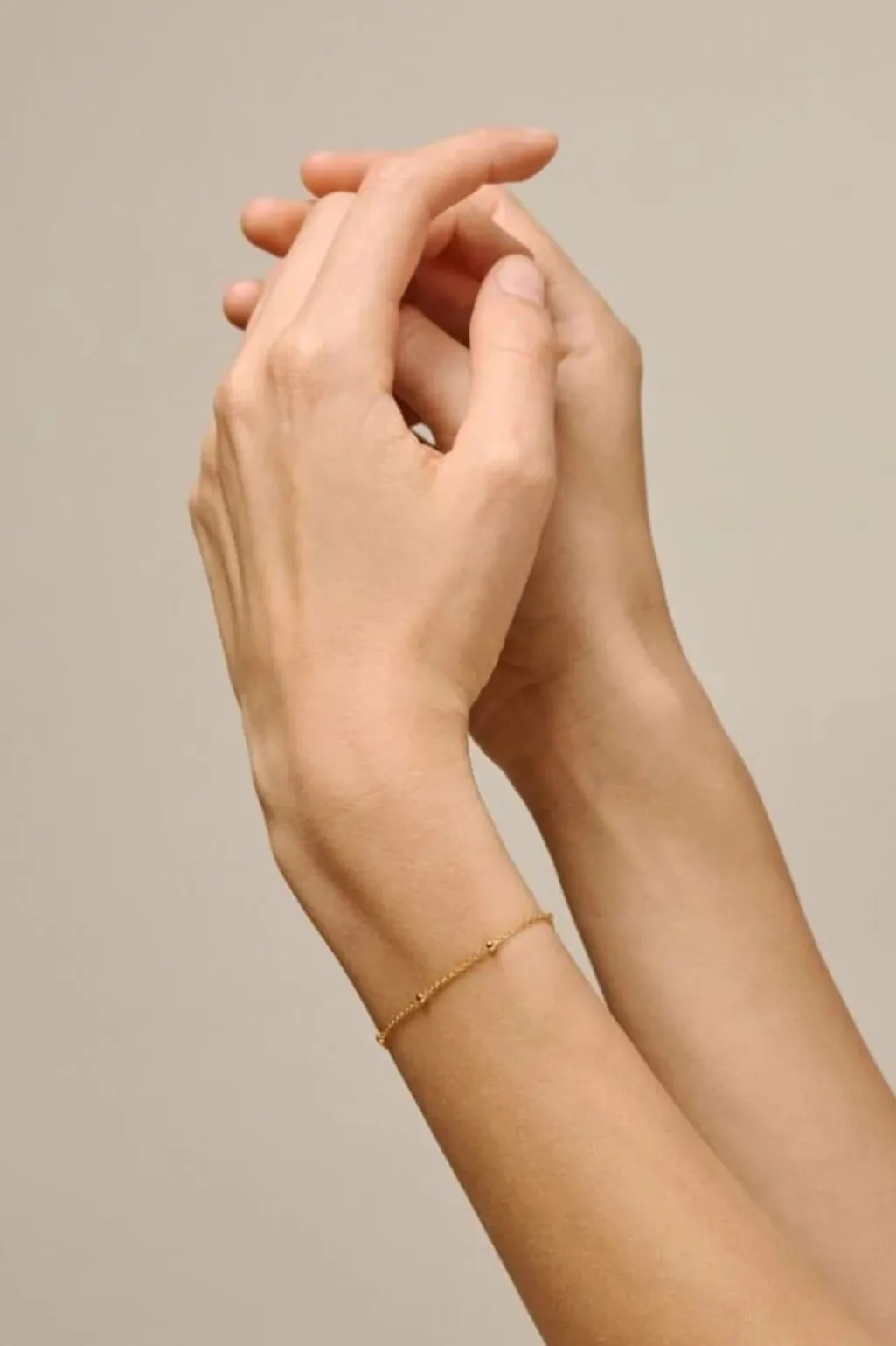 Armbånd fra Enamel Copenhagen med små guldkugler på en fin kæde. Armbåndet er lavet af genanvendt sterling sølv med 18K guldbelægning.