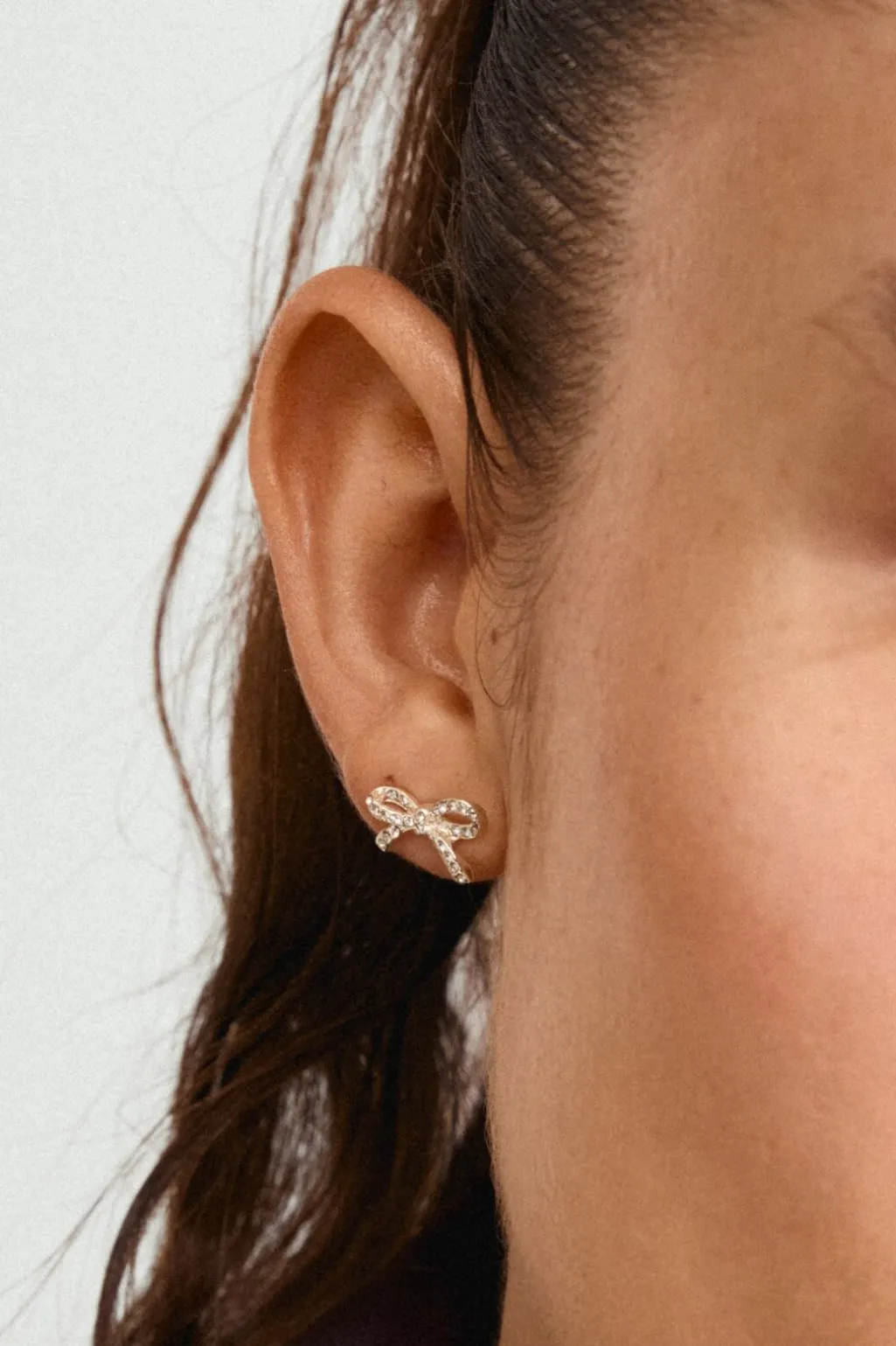 Sølvbelagte øreringe fra Pilgrim med sløjfeform og klare krystaller. Øreringene har en sikker og behagelig pasform med et let design.