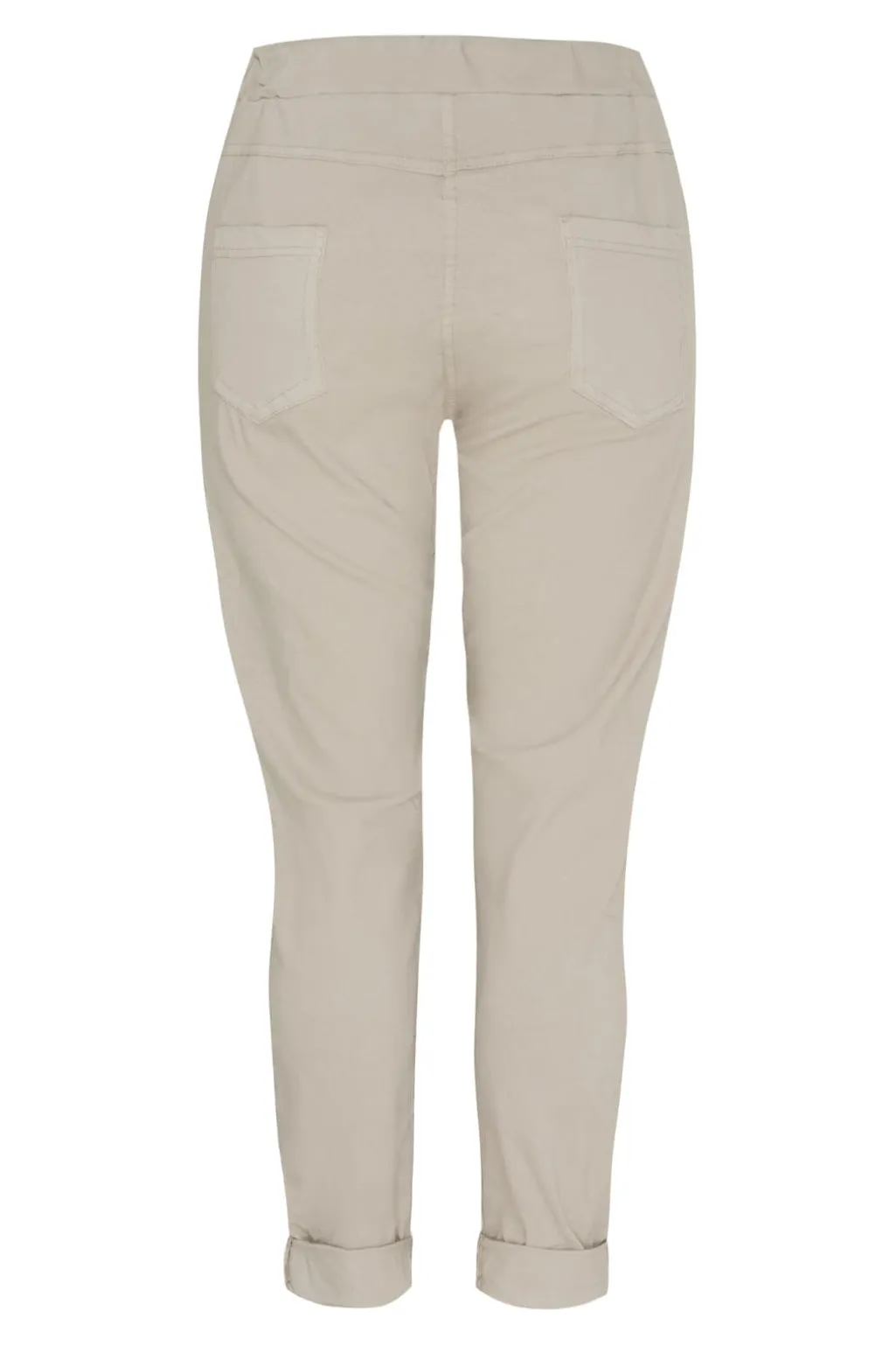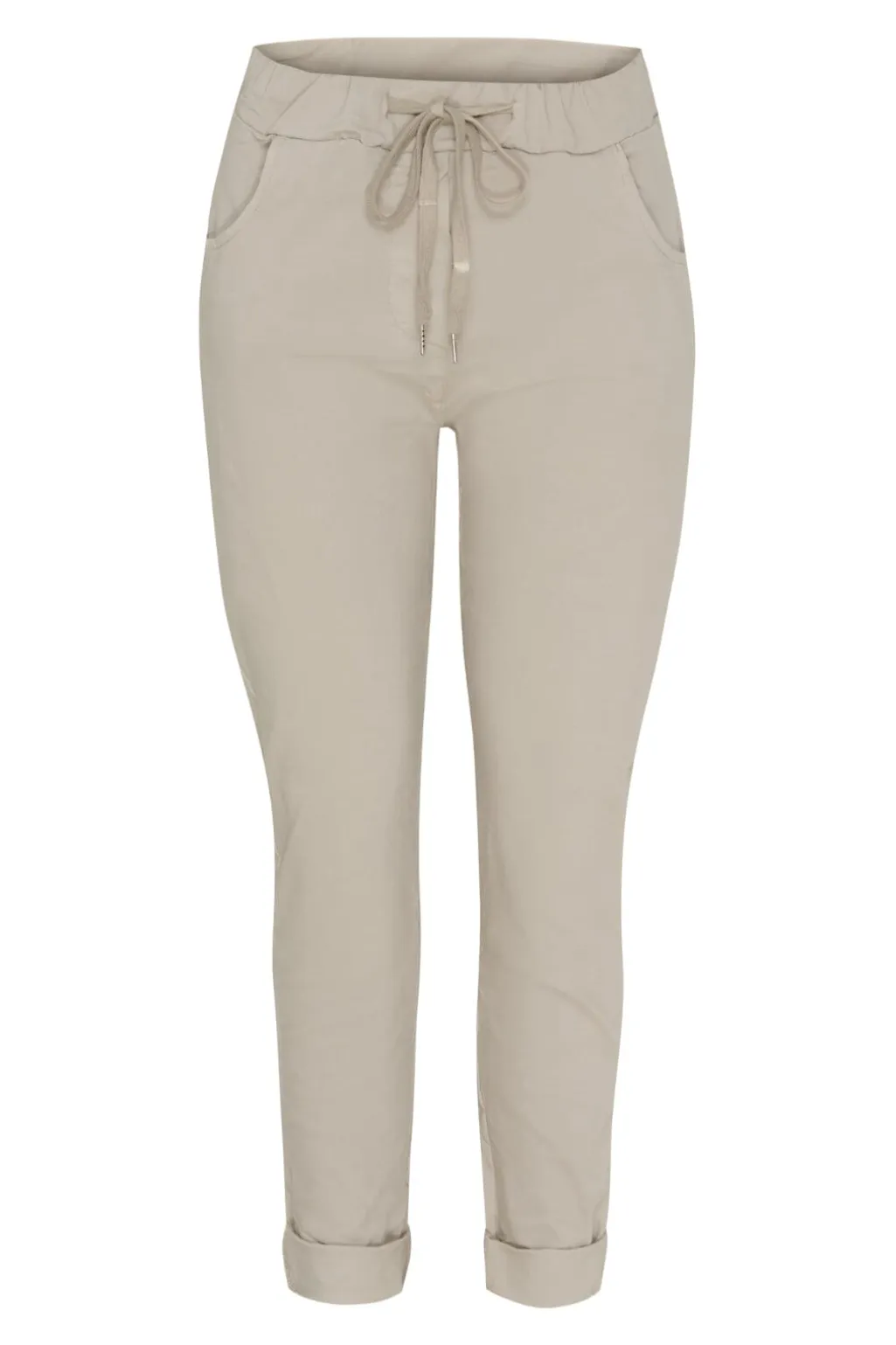 Beige bukser fra Marta Du Chateau med loose fit. Bukserne har en elastisk talje med snøre samt fire praktiske lommer fordelt på for- og bagsiden.