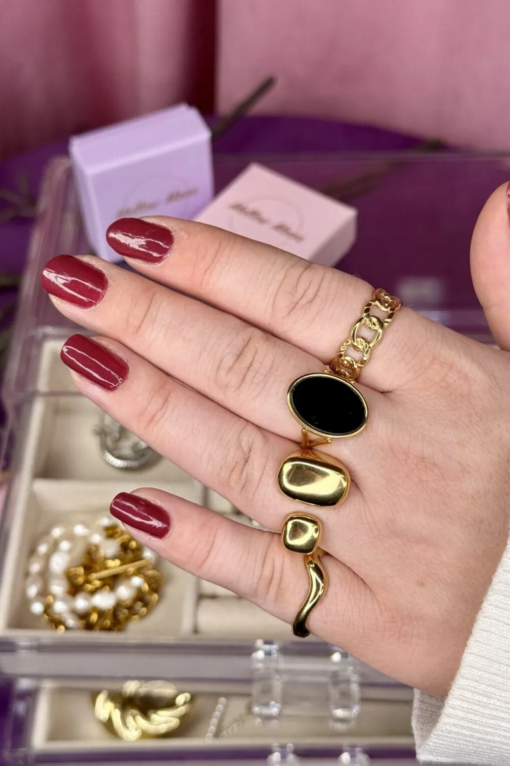 Forgyldt ring fra Mellow Moon i rustfrit stål. Ringen har en gylden overflade og en enkel form, der passer til både hverdag og fest.