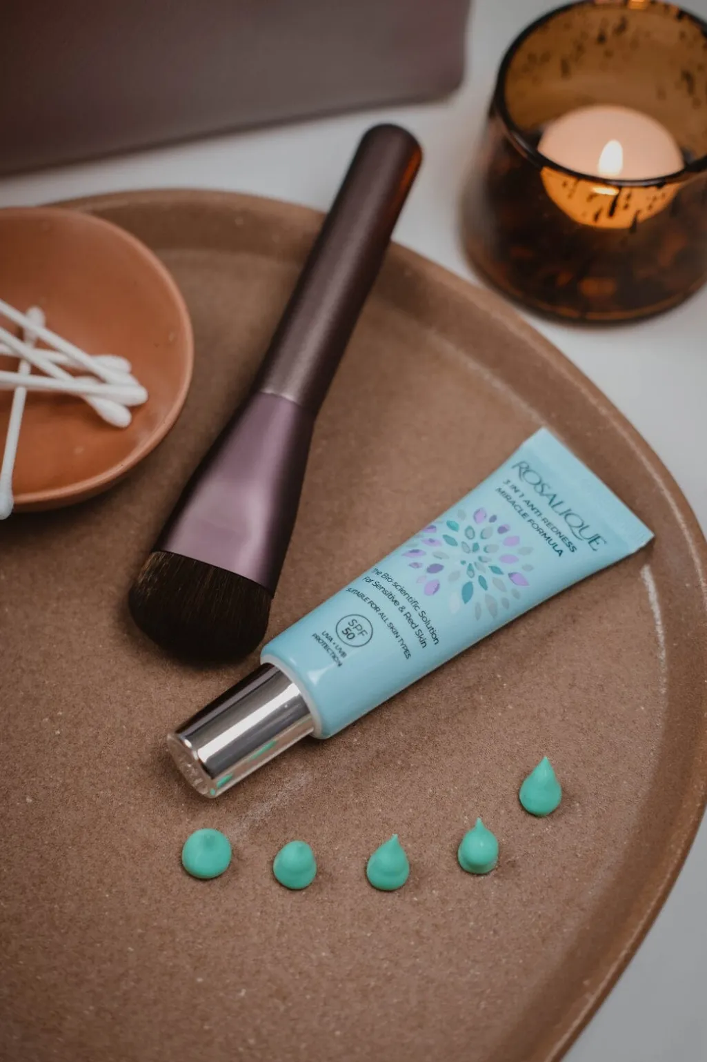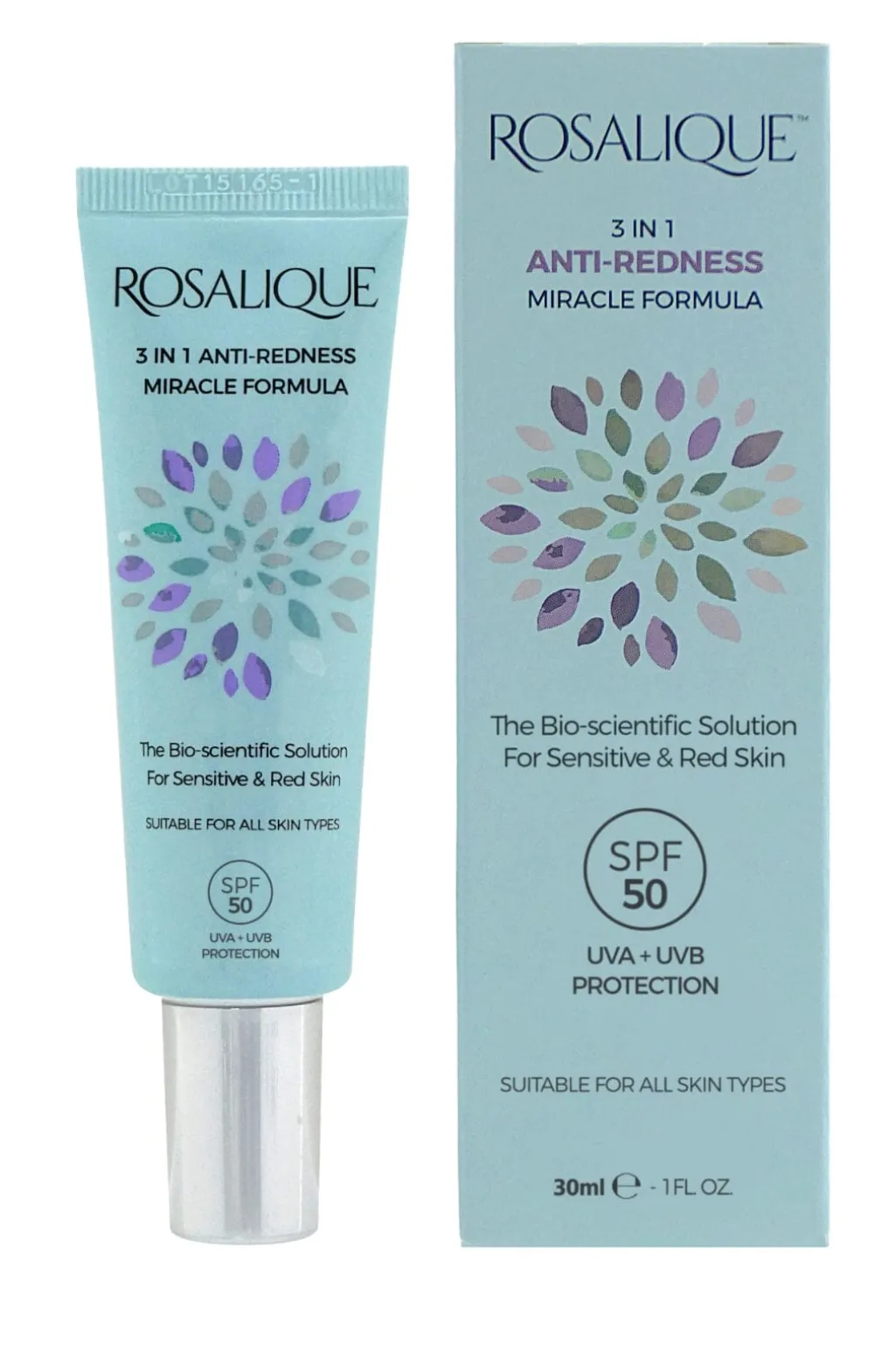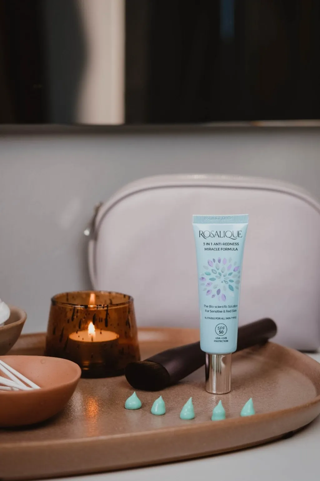 Dagcreme med høj solbeskyttelse og anti-rødmeeffekt. Den mintgrønne creme tilpasser sig hudtonen og har en let dækkende konsistens til sensitiv hud.