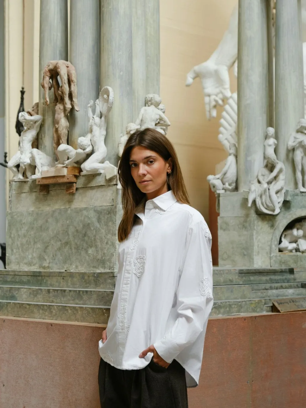 Hvid skjorte fra Neo Noir, lavet af 100 % bomuld. Skjorten har broderede blomster og en oversize pasform.