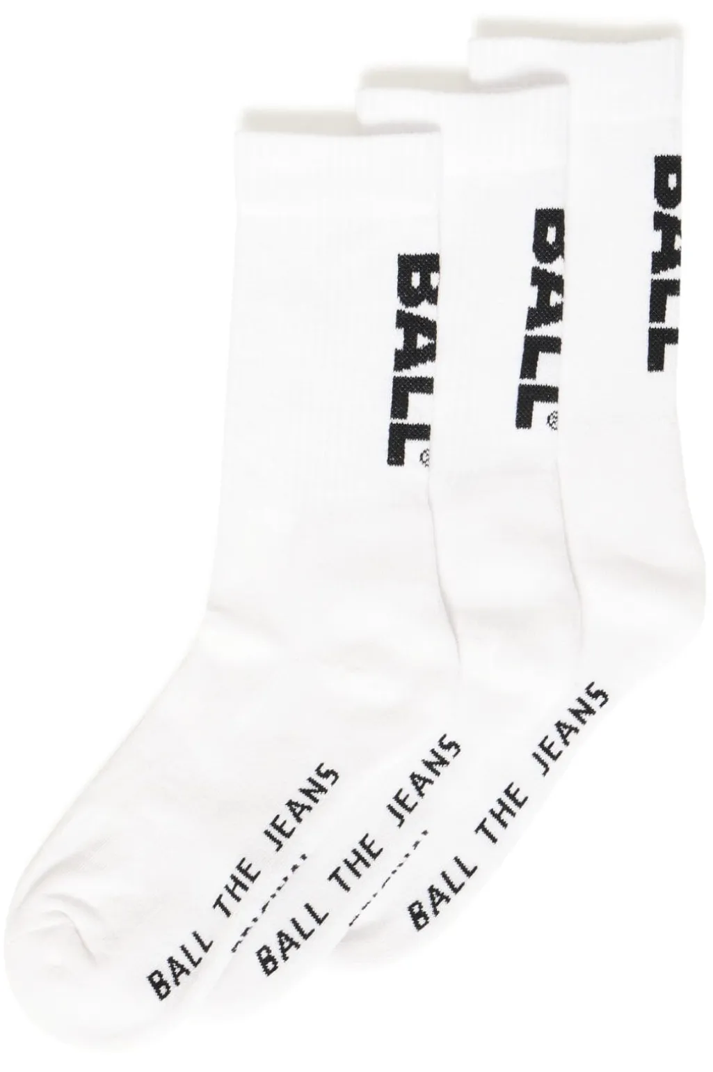 Hvide sokker fra Ball med sort tekst. Sokkerne har et distinkt design med BALL-logo og teksten THE JEANS, der gør dem til mere end bare basis-sokker.