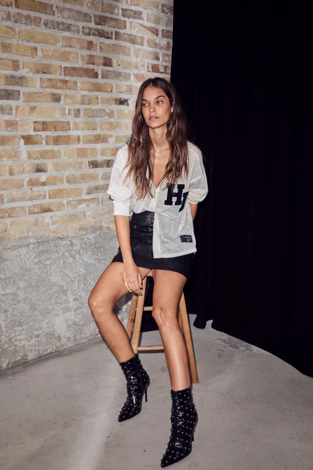 Bluse fra Haute L’Amitié i en hvid perlefarvet nuance. Blusen er lavet af mesh-lignende stof med sorte HL-bogstaver på venstre bryst.