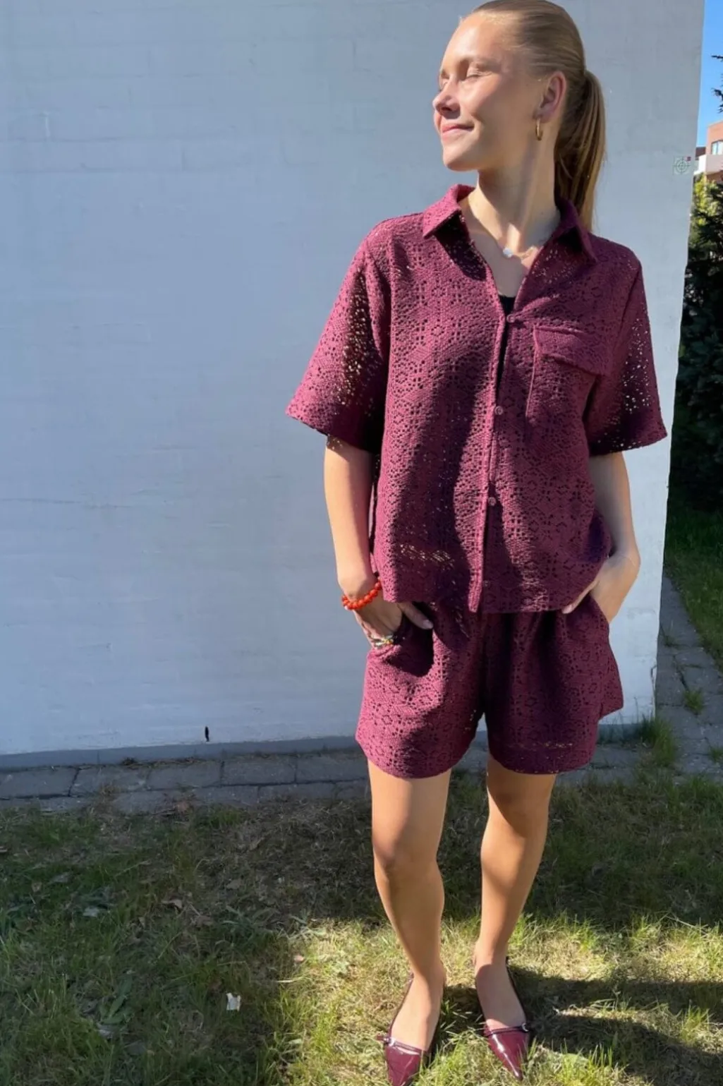 Den mørke bordeauxnuance fungerer godt sammen med både lyse og mørke farver. Shortsene kan styles med en t-shirt om dagen eller en bluse om aftenen.