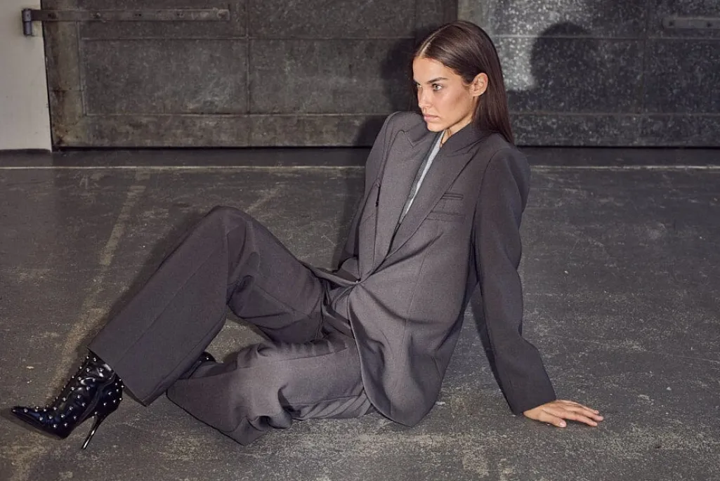 Grå bukser fra Haute L’Amitié i gulvlængde. Bukserne er designet til festlige og formelle lejligheder med en lige benstil.