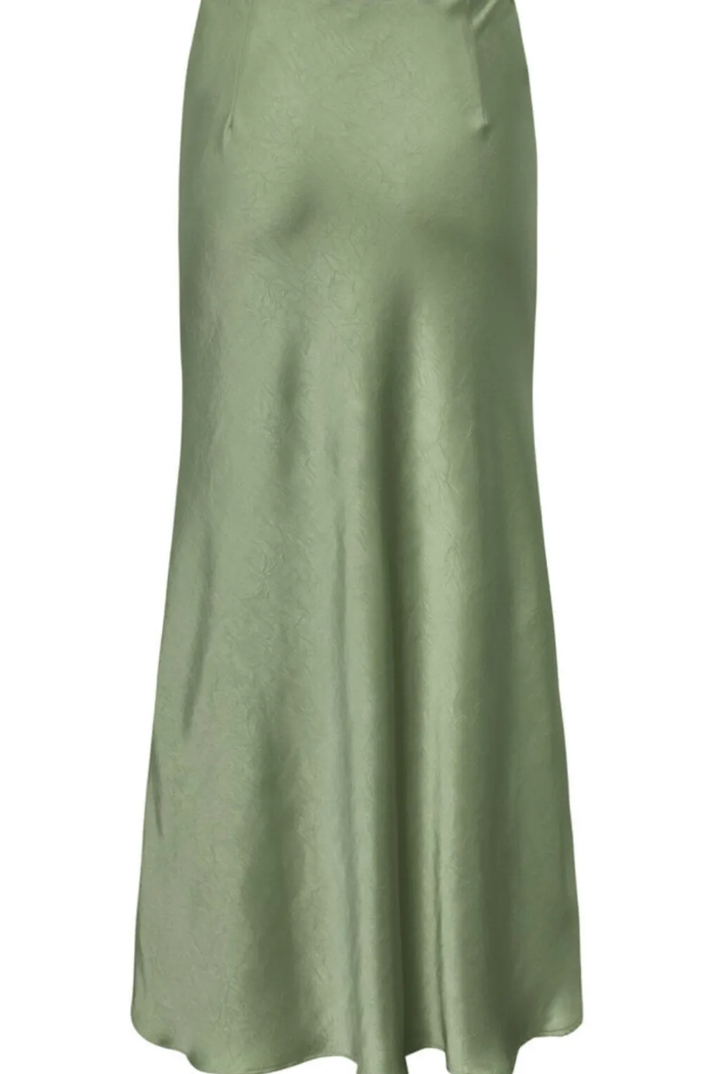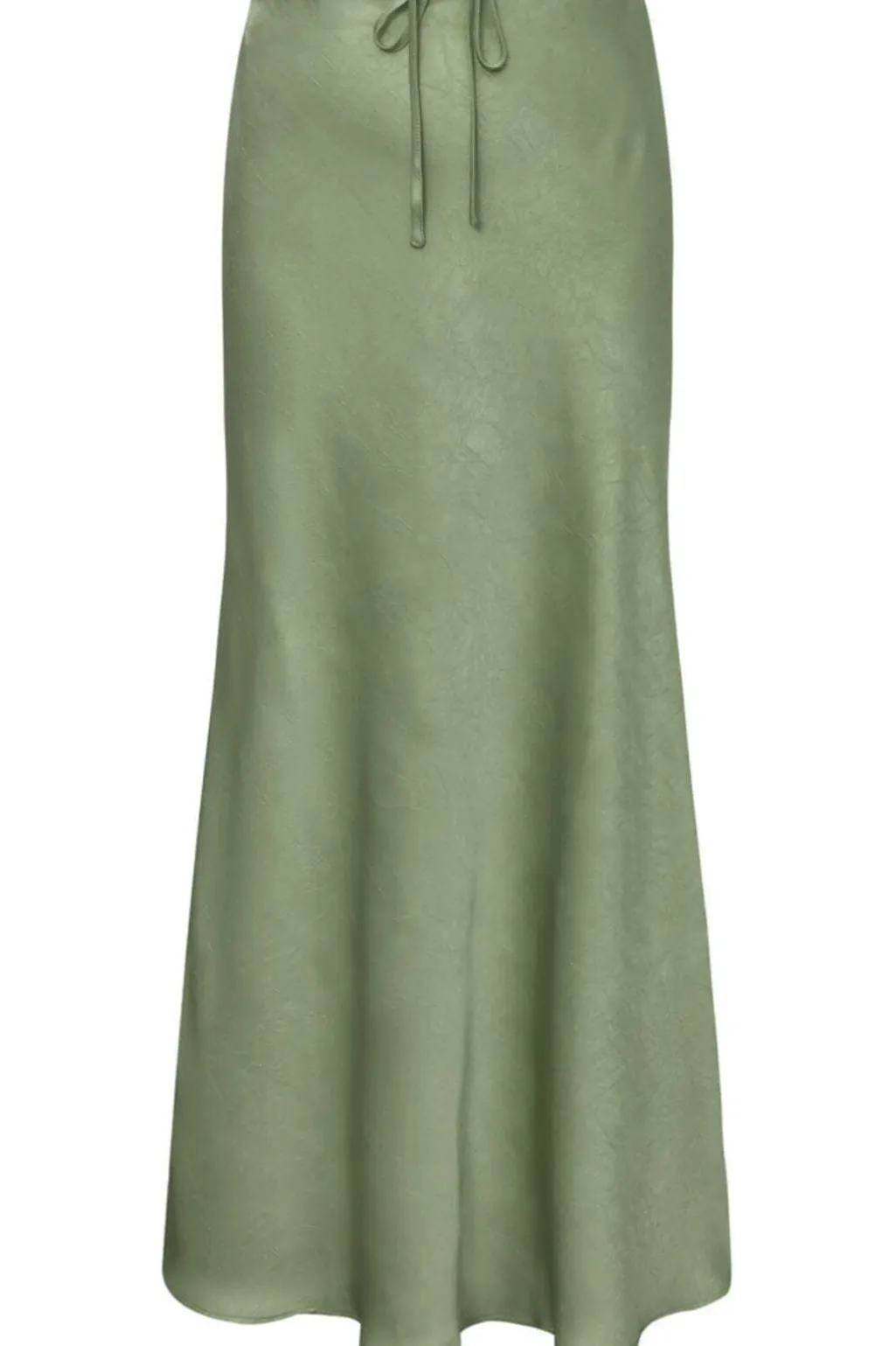 Langt skørt fra A-View i støvet grøn. Skørtet har en flydende silhuet og går ned til anklerne. Med snøre i taljen kan pasformen justeres.