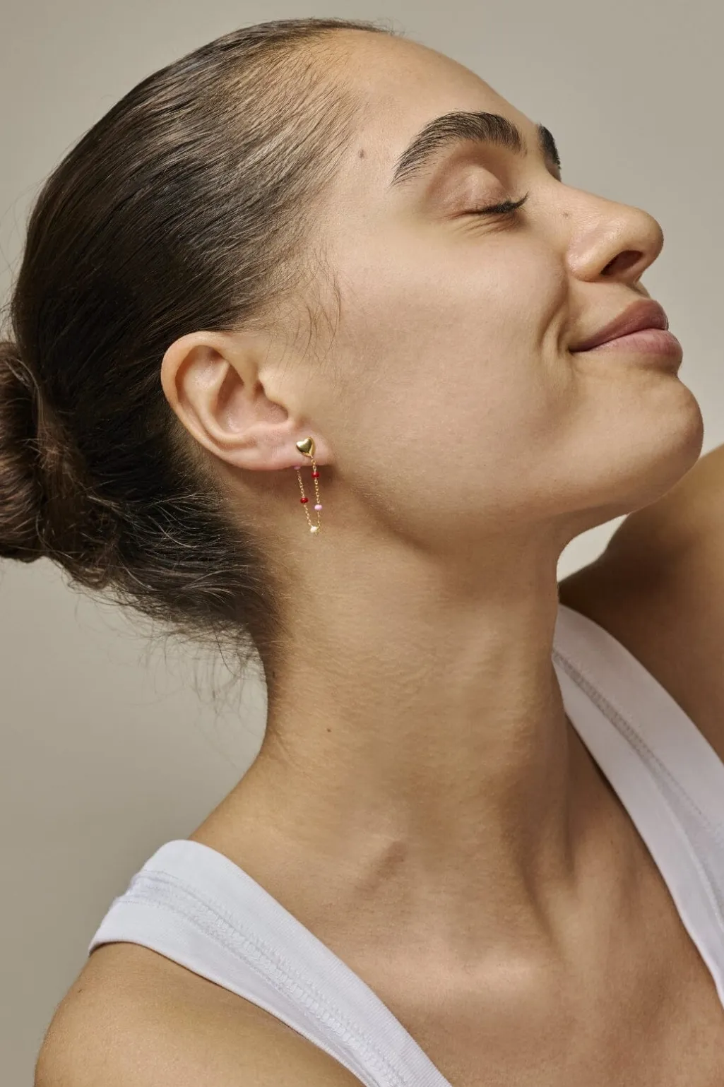 - Hjerteformet ørestik med kæde