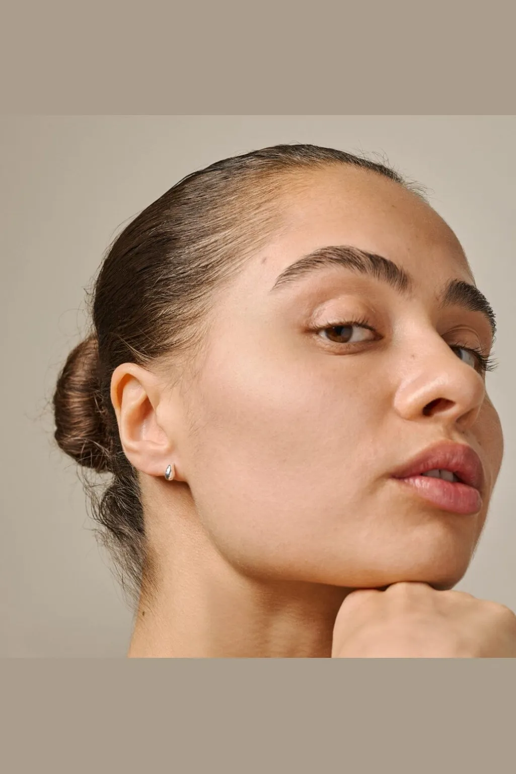 Sølvfarvede ørestikker fra Enamel Copenhagen med en dråbeformet, organisk form. Ørestikkerne er lavet af genanvendt sterling sølv og har en blank overflade.