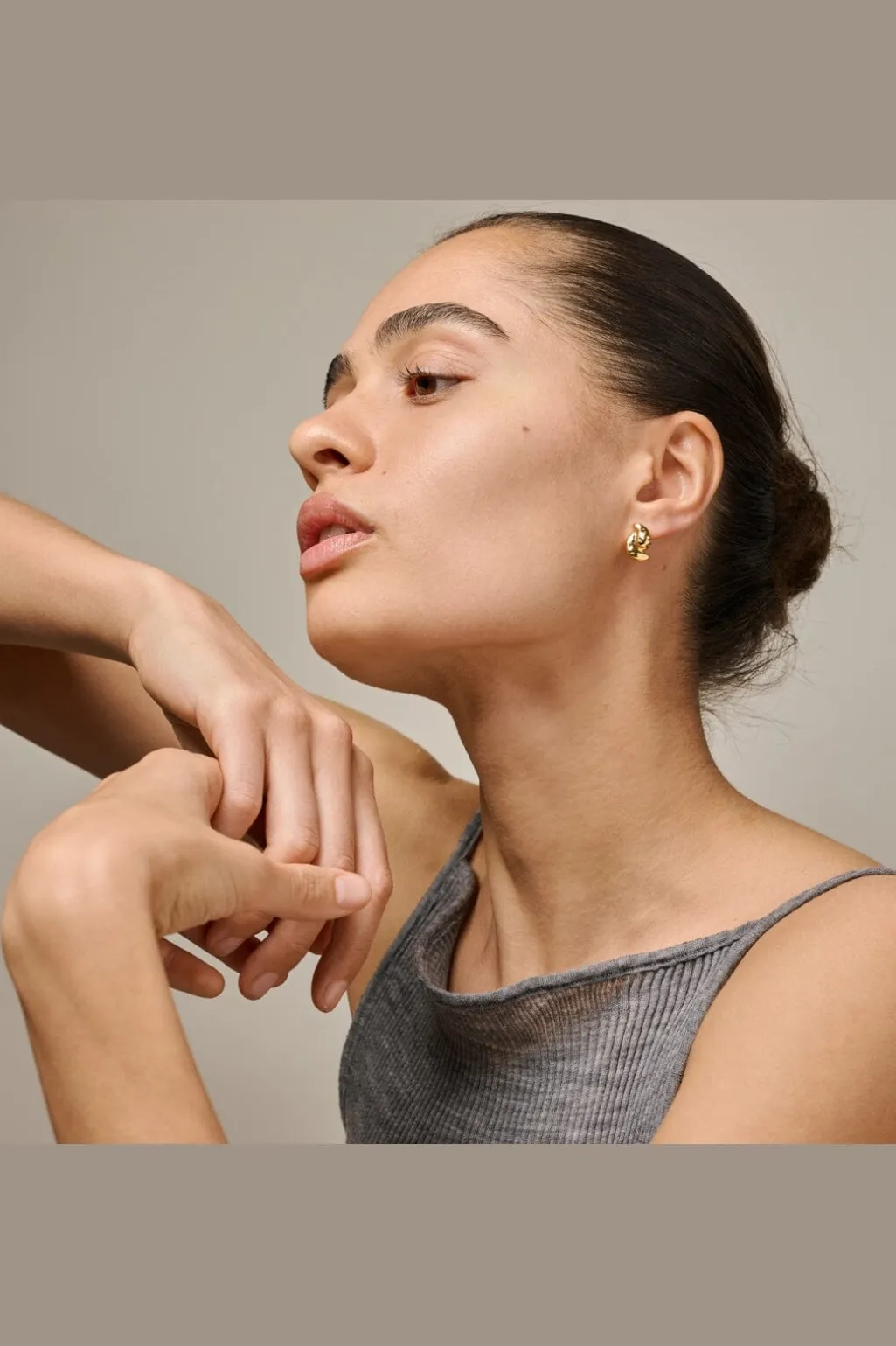 Gyldne ørestikker fra Enamel Copenhagen med en organisk form. Smykkerne er fremstillet af 18K guldbelagt genanvendt sterling sølv med en skinnende overflade.