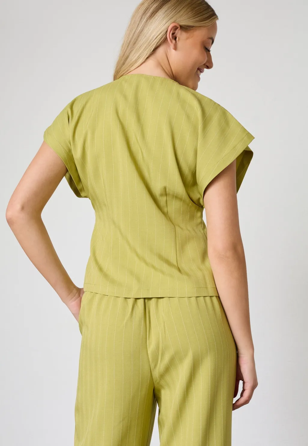 Limegrøn bluse med nålestriber fra Sisters Point. Blusen passer til formelle, afslappede og festlige lejligheder.