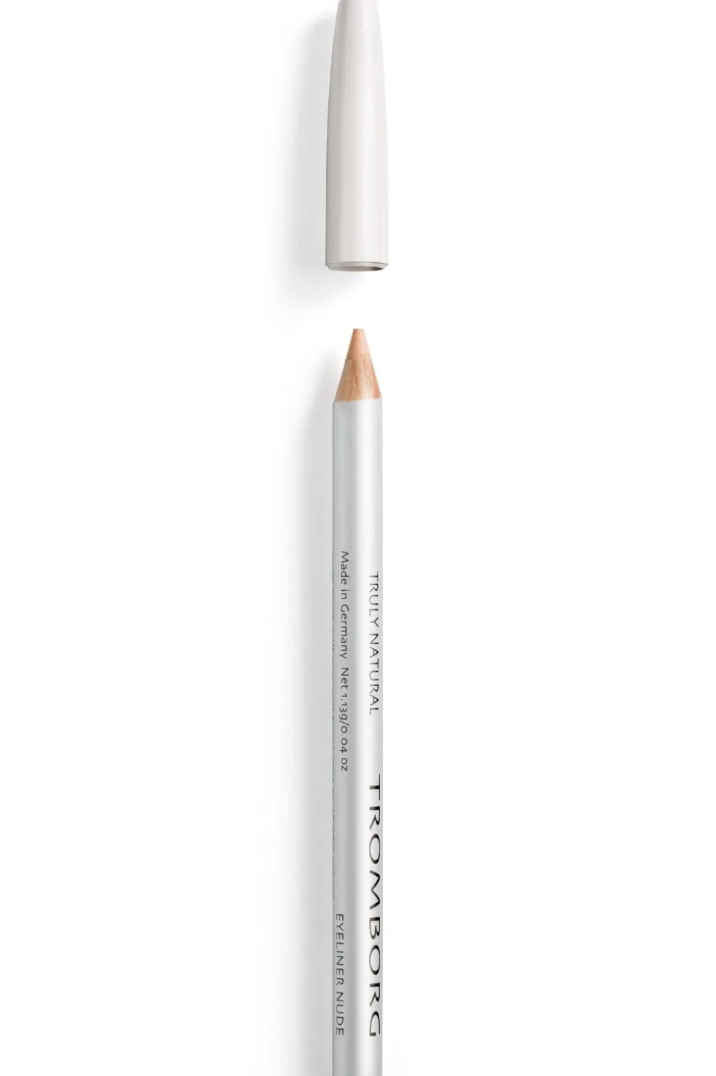 En nude eyeliner i cremet konsistens fra Tromborg. Blyanten har en nettovægt på 1,3 g og indeholder rene mineralpigmenter til en naturlig makeup.