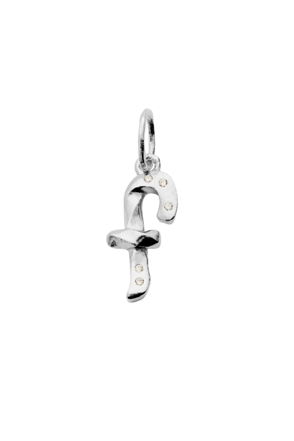 Sølvhalskæde fra Maanesten med et F-formet vedhæng. Halskæden er lavet af genanvendt sterlingsølv med en blank overflade og har en justerbar kæde.
