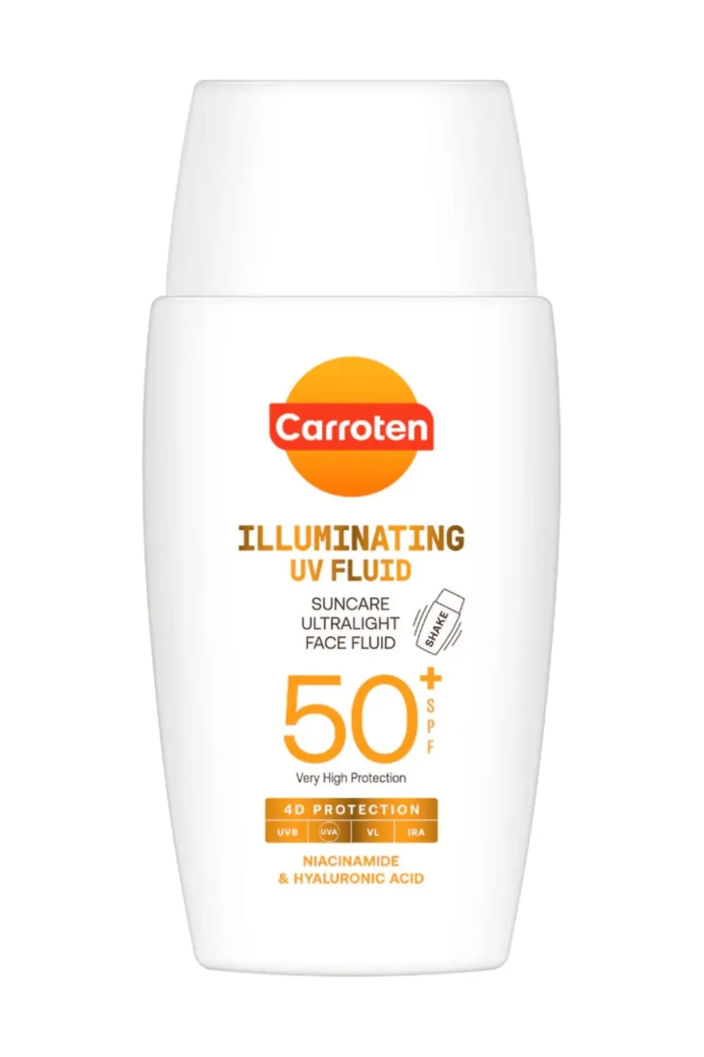 Let solcreme til ansigtet med SPF 50+ fra Carroten. En flydende formel med 4D-beskyttelse mod UVB-, UVA-, VL- og IRA-stråler samt hudplejende ingredienser.
