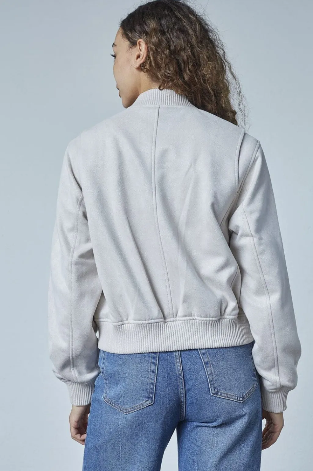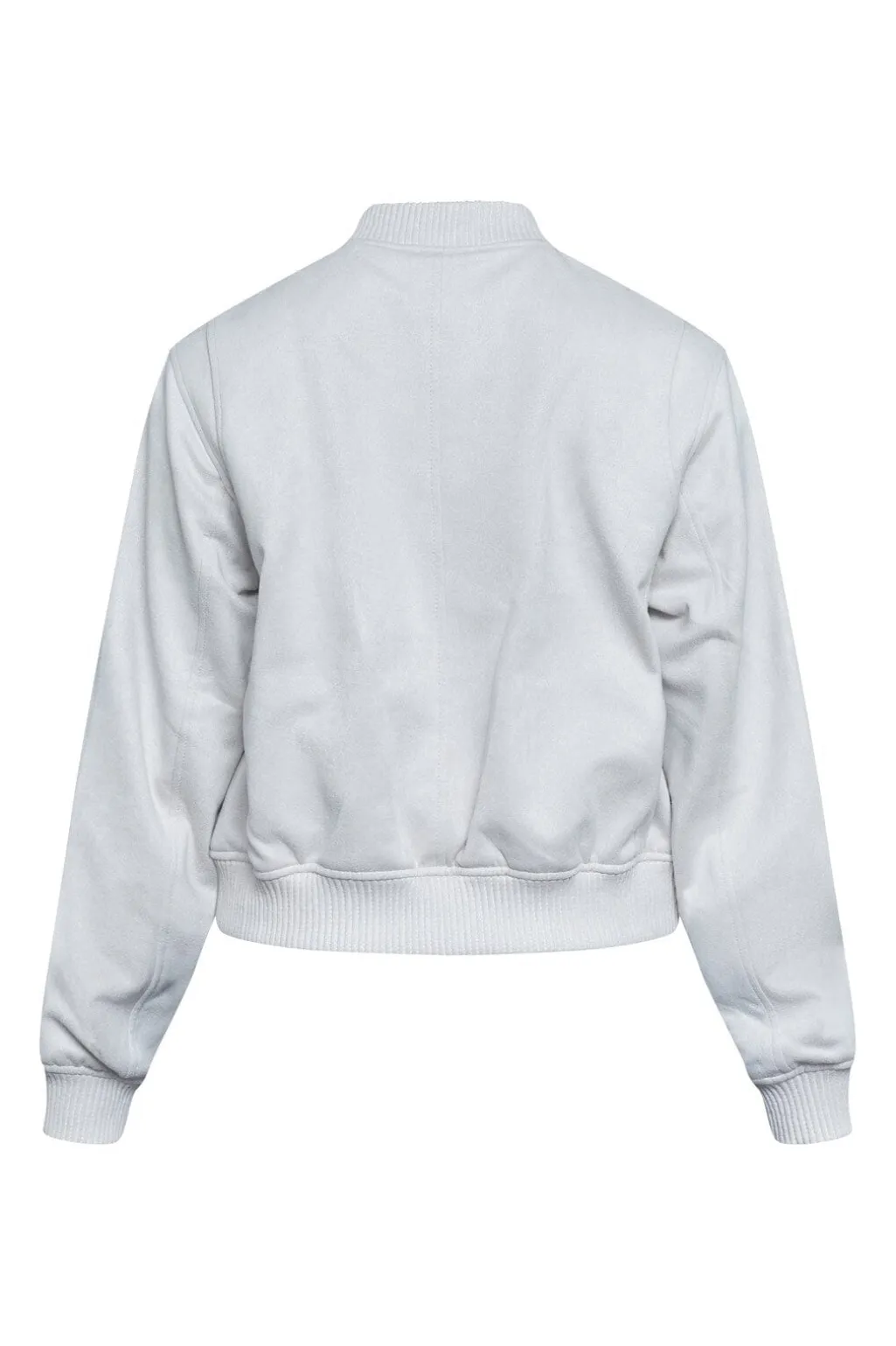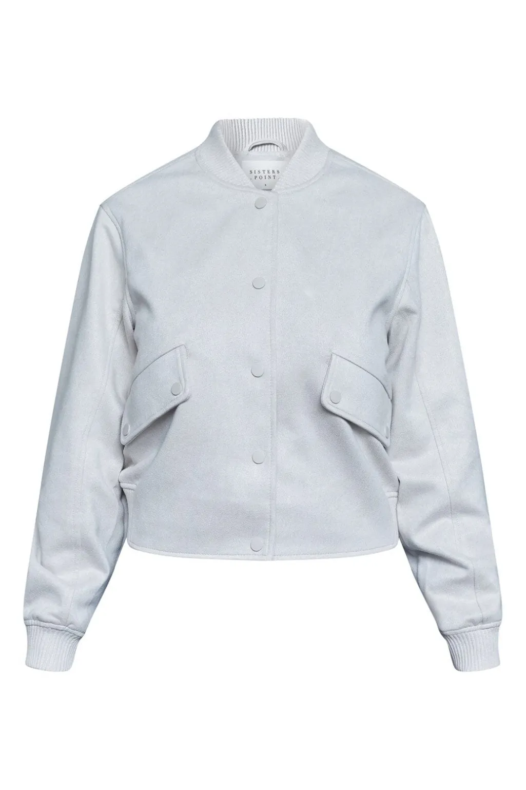 Cremehvid bomberjakke fra Sisters Point med kort længde og ribkanter. Jakken har en løs pasform med trykknapper og to frontlommer.