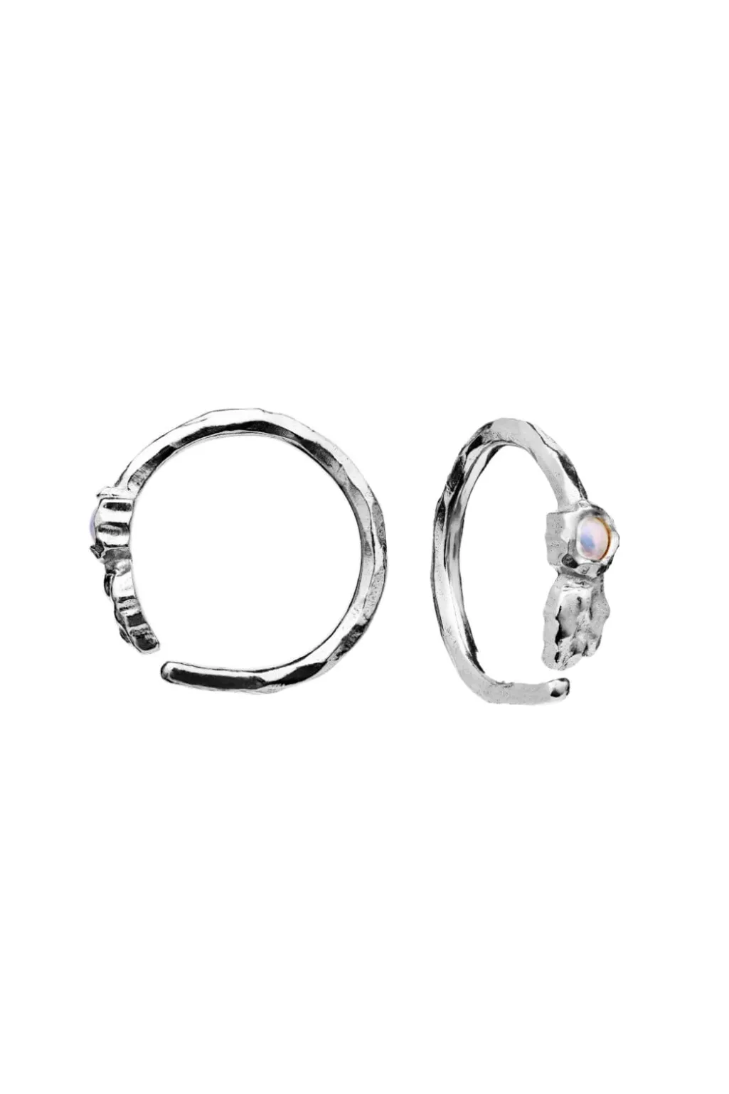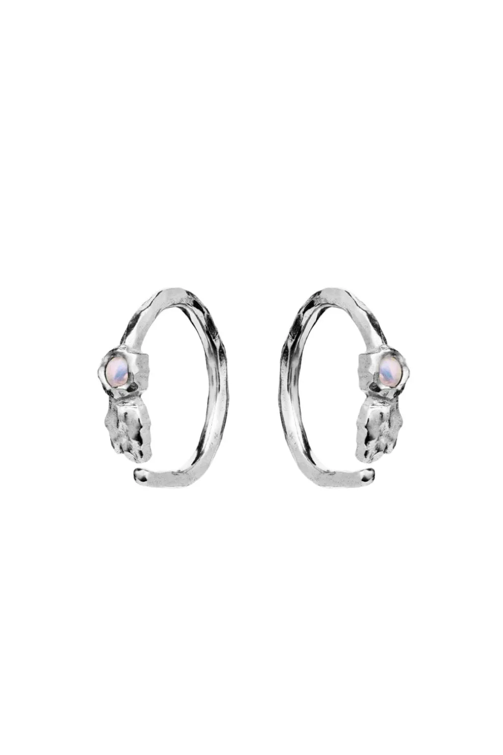 Sølvfarvede hoop-øreringe fra Maanesten med en lille ædelsten. Øreringene er fremstillet af genanvendt sterling sølv og har en længde på 10 millimeter.