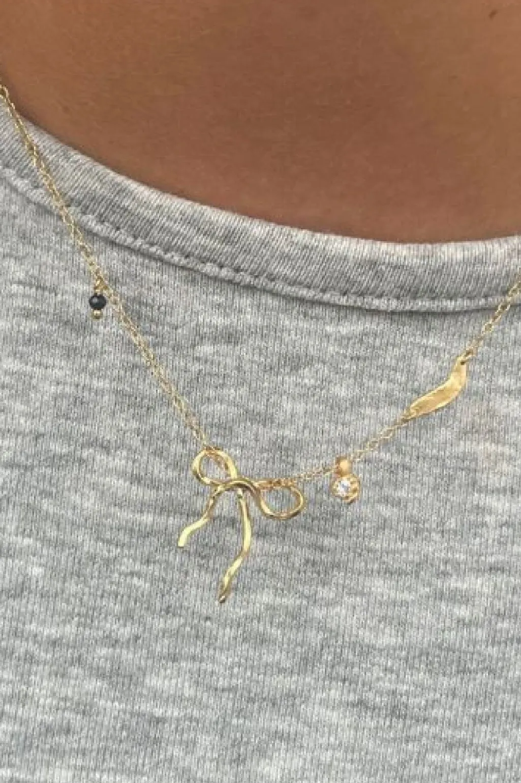 Gyldent sløjfevedhæng fra Stine A med en struktureret overflade. Vedhænget kan nemt kombineres med andre smykker fra samme serie.