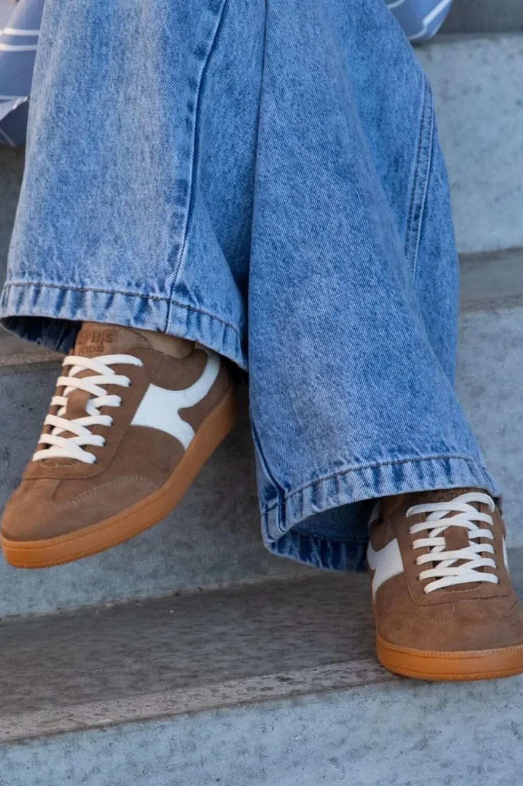 Sneakers fra Copenhagen Shoes i ruskind med en neutral taupe-farve. Skoene har hvide detaljer og en gummisål, der giver et afslappet og praktisk look.